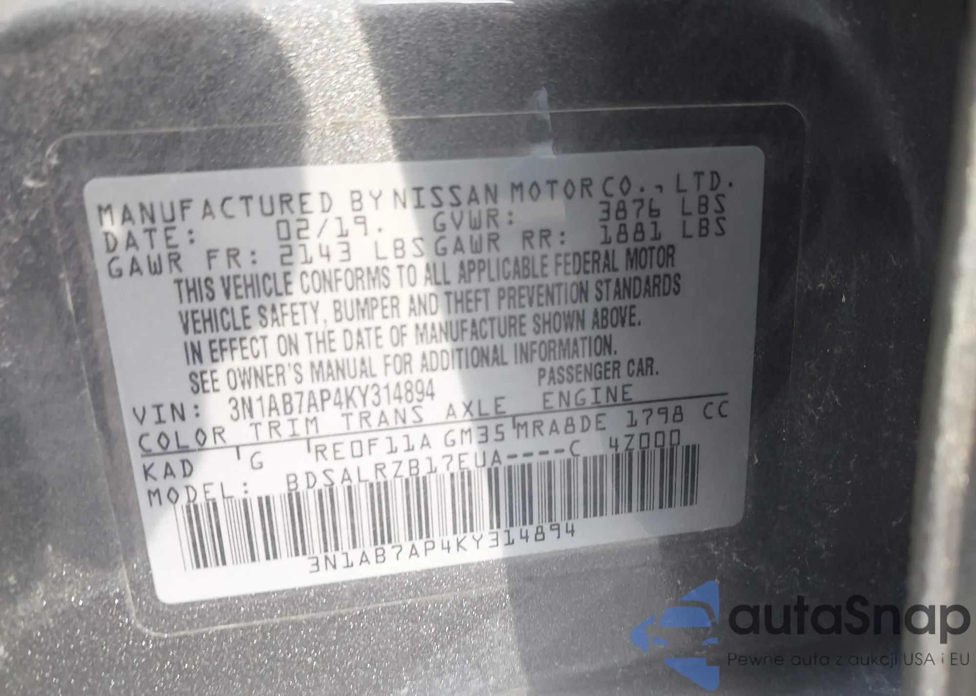 • VIN 1N4AL3AP6FC423851