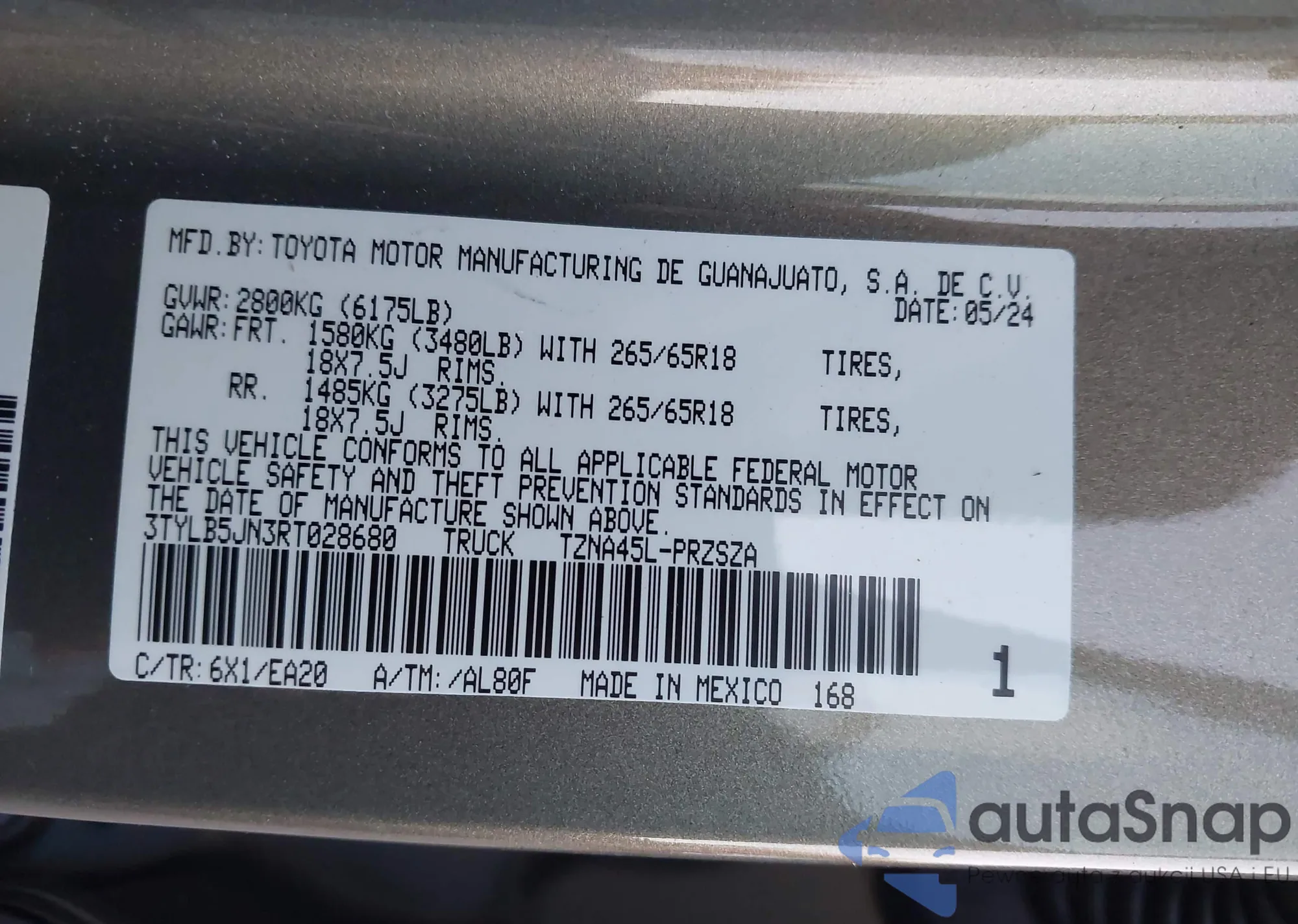 LOT: 43689939 VIN: 3TYLB5JN3RT028680