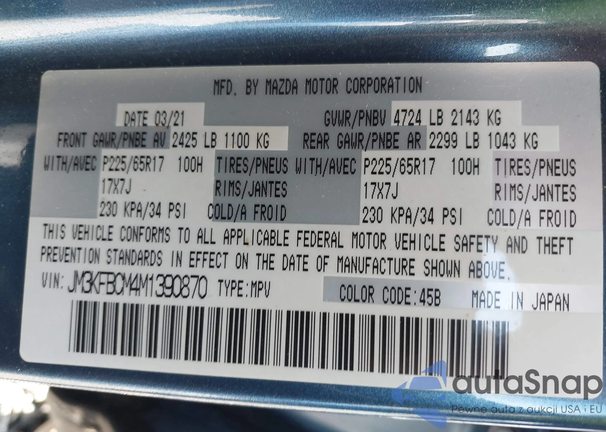 • VIN 1HGCV3F47LA001933