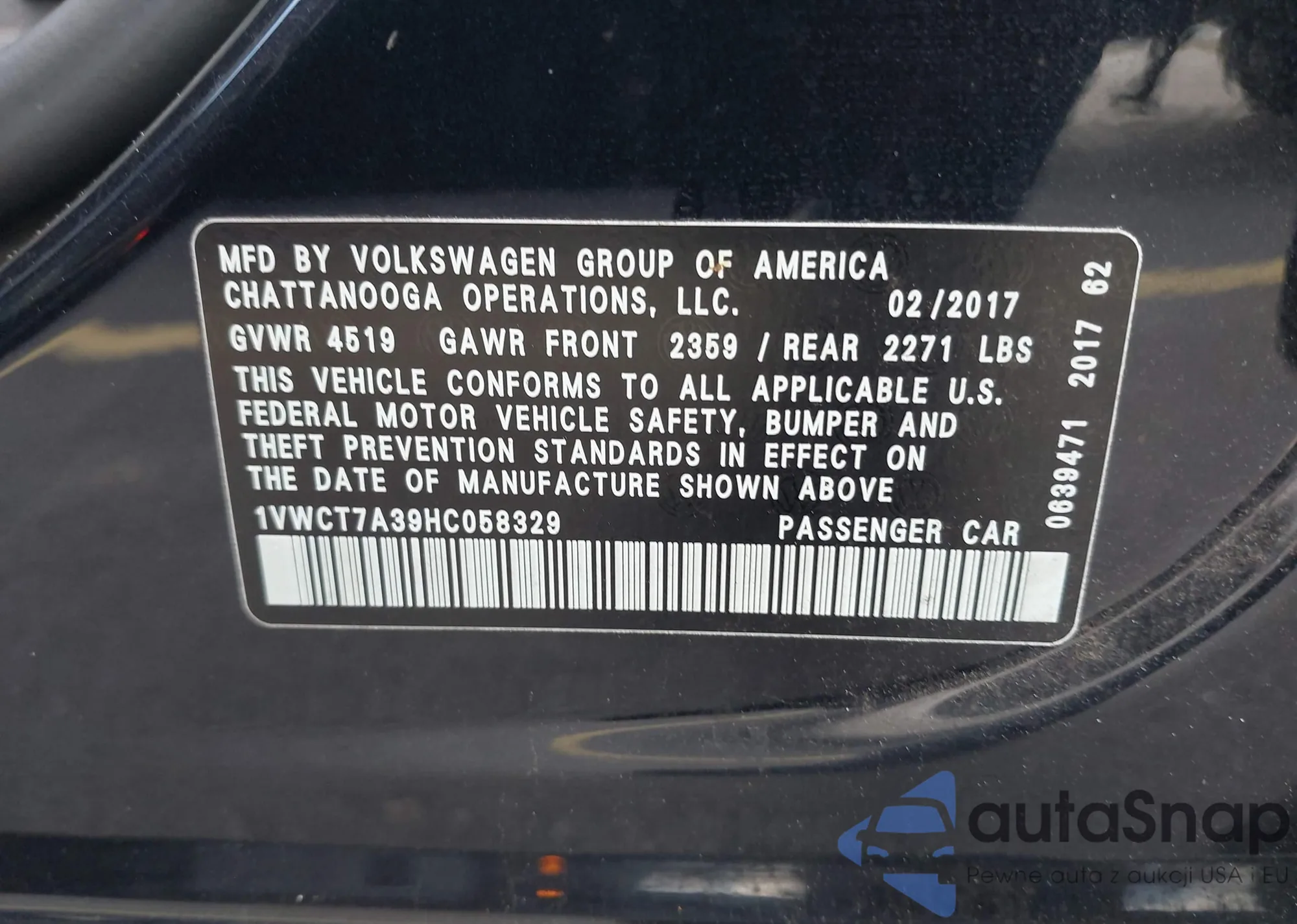 • VIN 1VWCT7A39HC058329