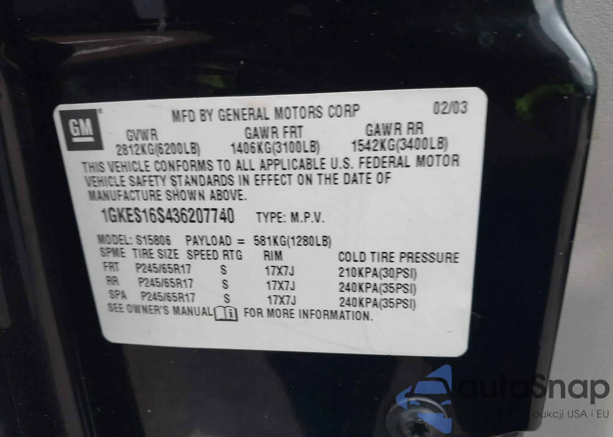 • VIN 2GKALSEK5D6134277