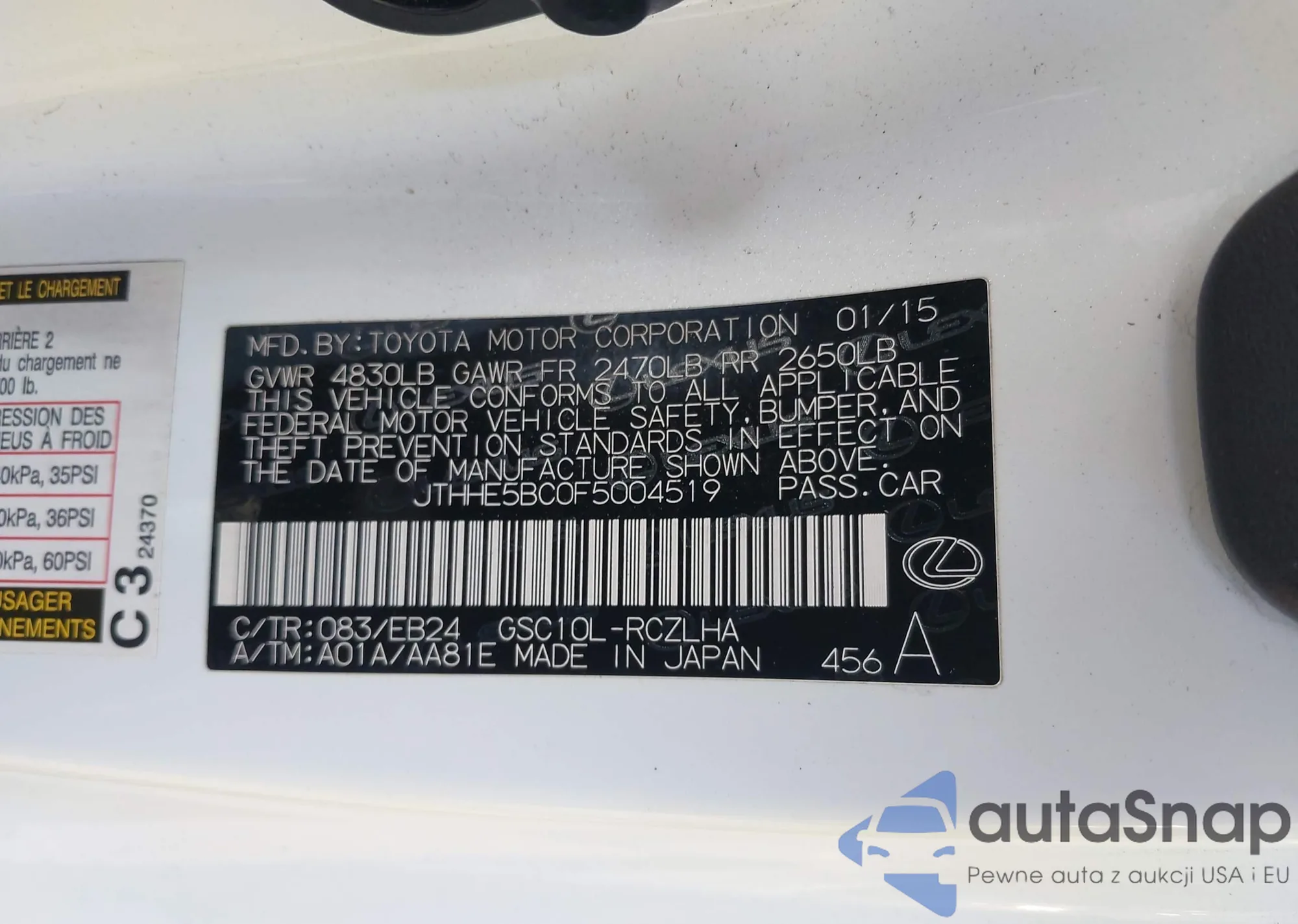LOT: 43784919 VIN: JTJZK1BA6A2407210