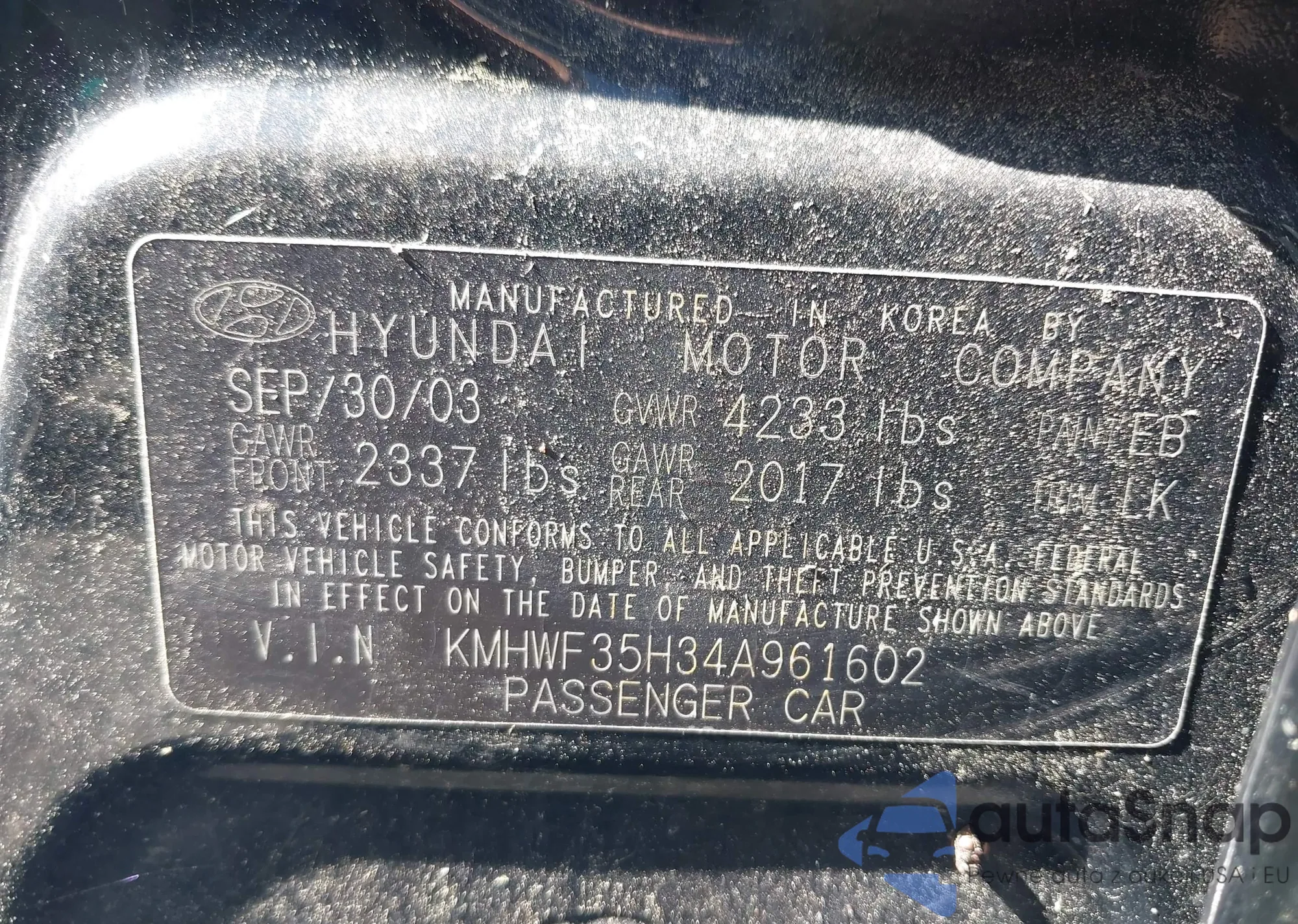 LOT: 43635686 VIN: KMHWF35H34A961602