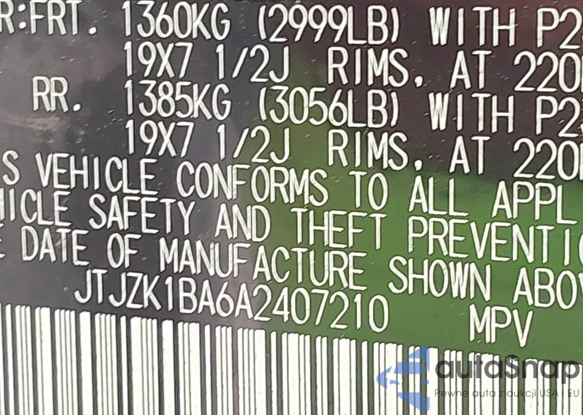 • VIN JTJZK1BA6A2407210