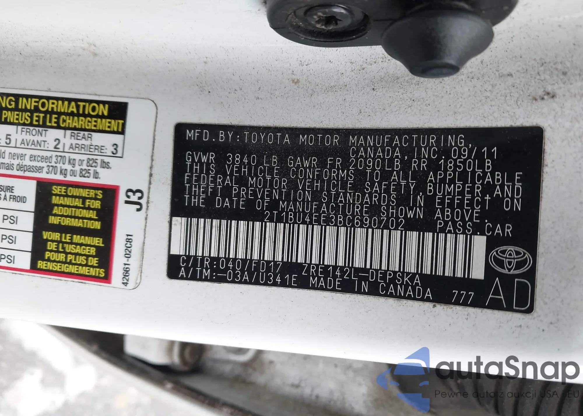 • VIN 2T1BU4EE3BC690702