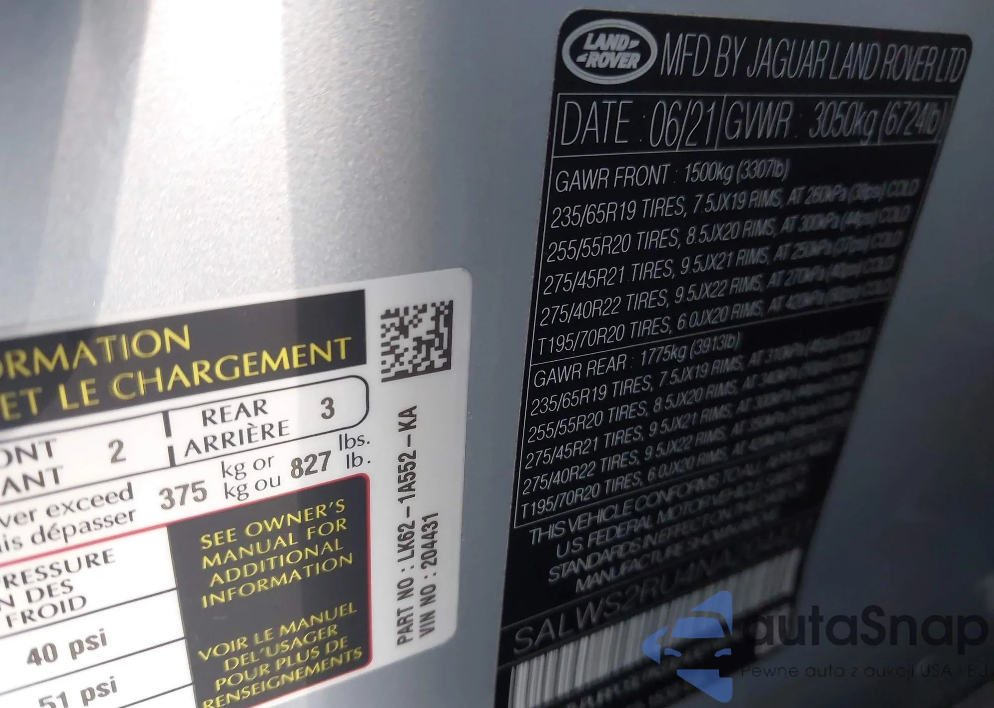 LOT: 43618703 VIN: SALWS2RU4NA204431