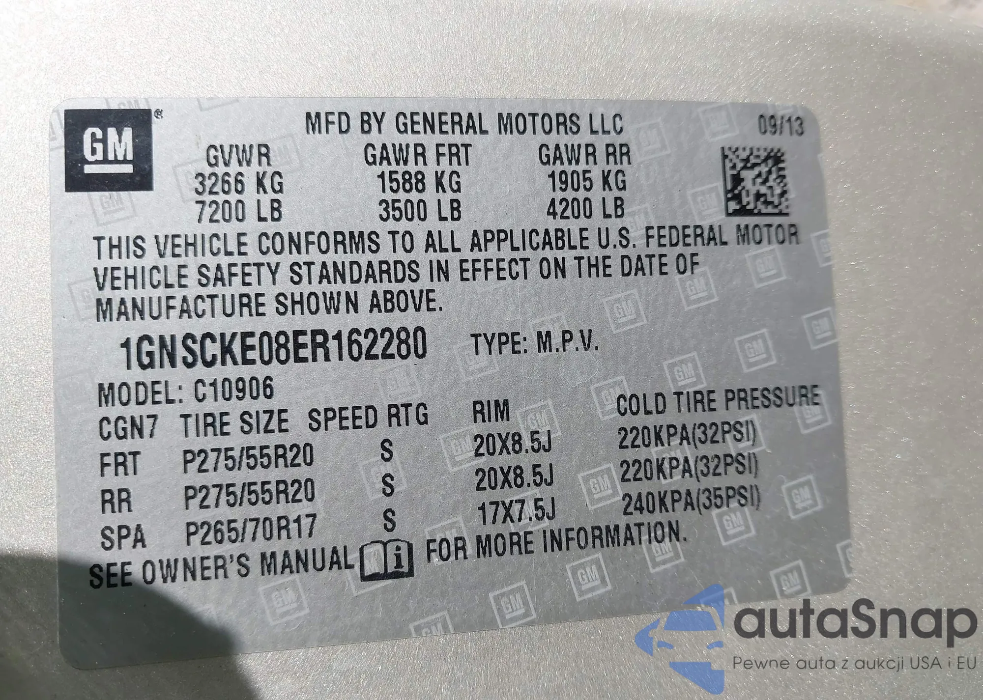 LOT: 43637238 VIN: 1GNSCKE08ER162280