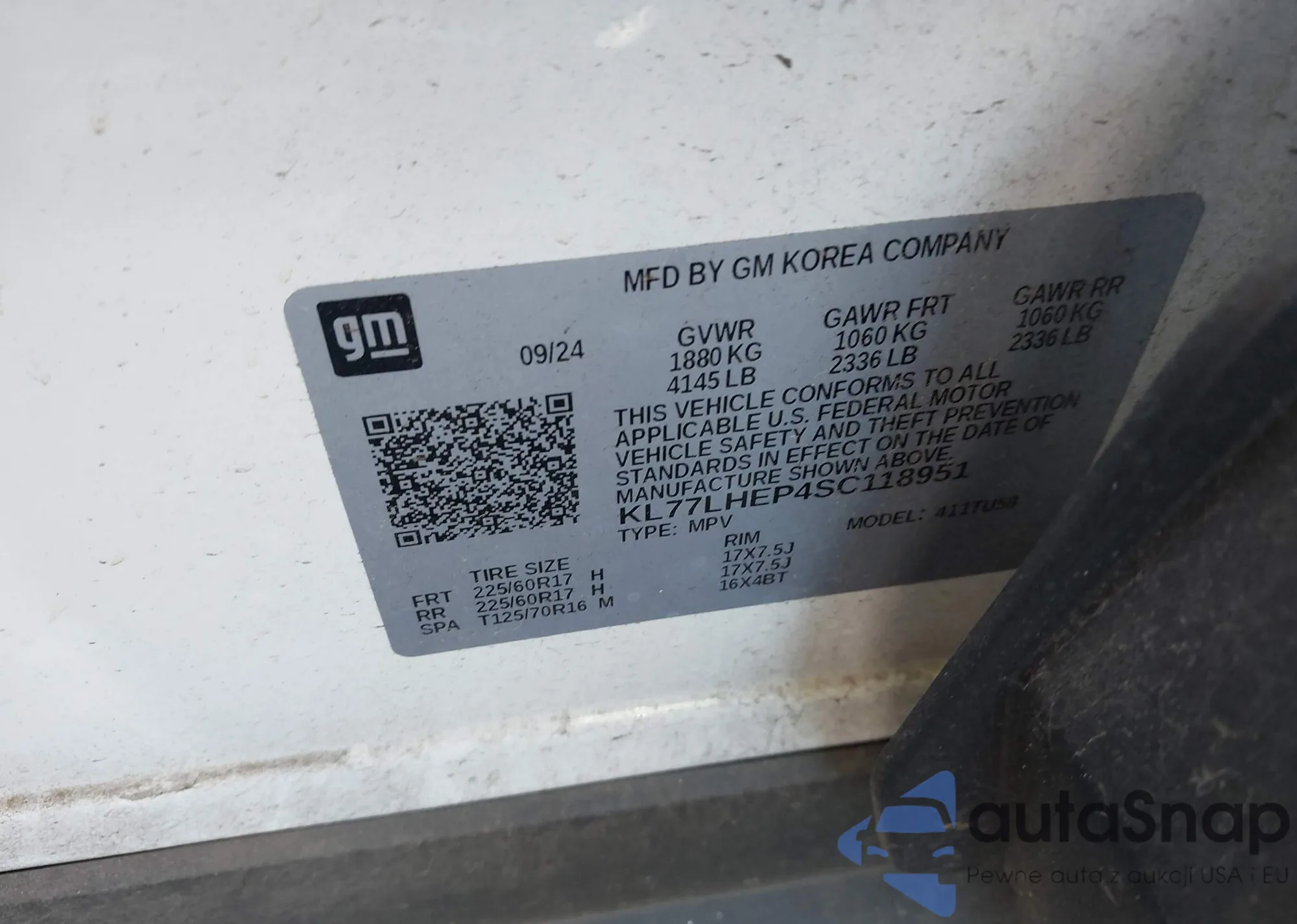 LOT: 43659371 VIN: KL77LHEP4SC118951