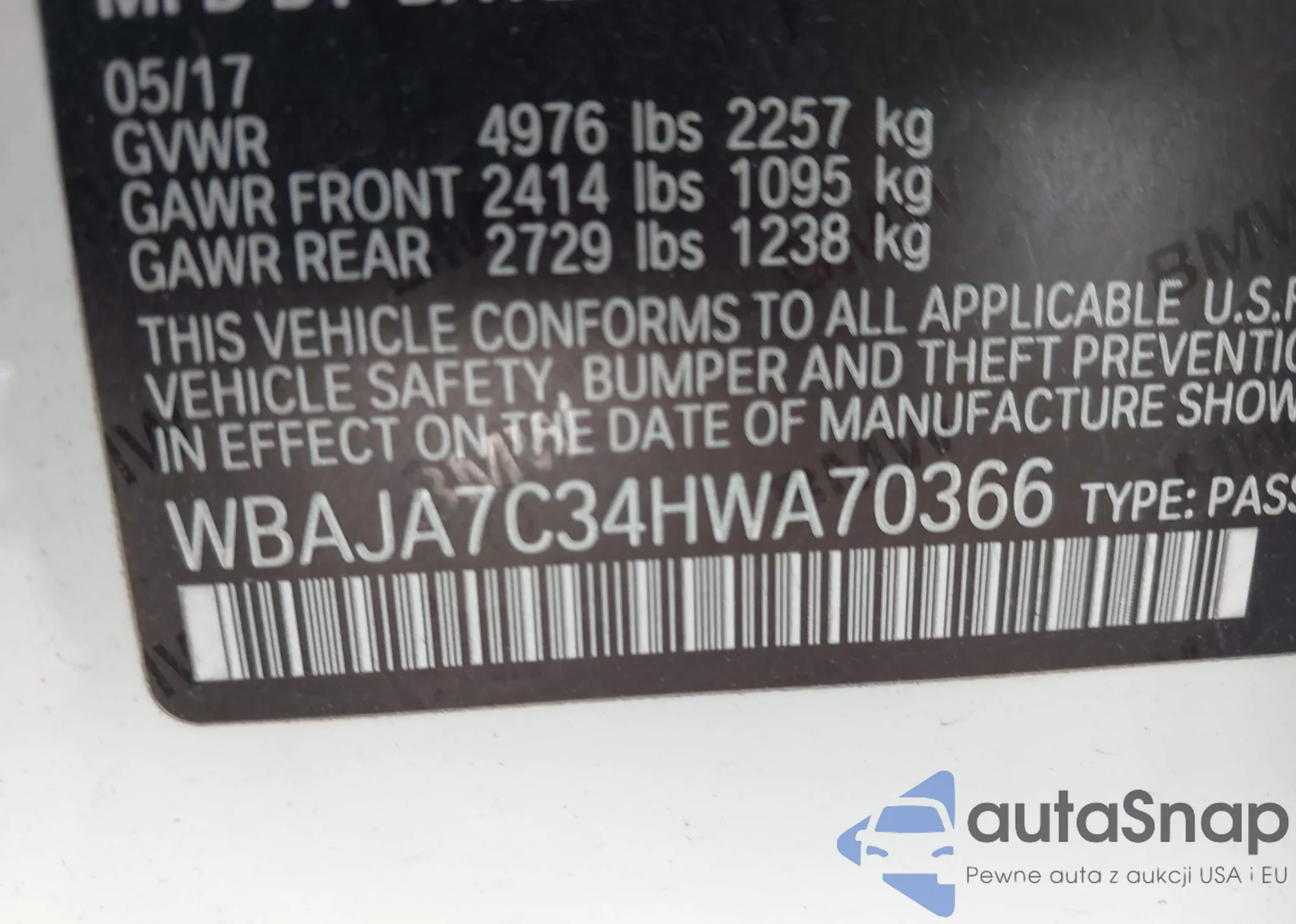 • VIN WBAJA7C34HWA70366