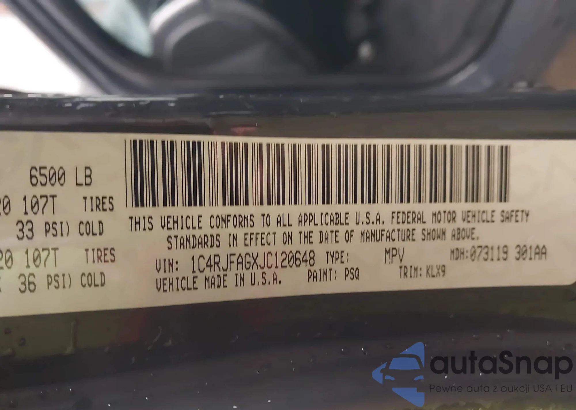 • VIN 1C4RJFAGXJC120648