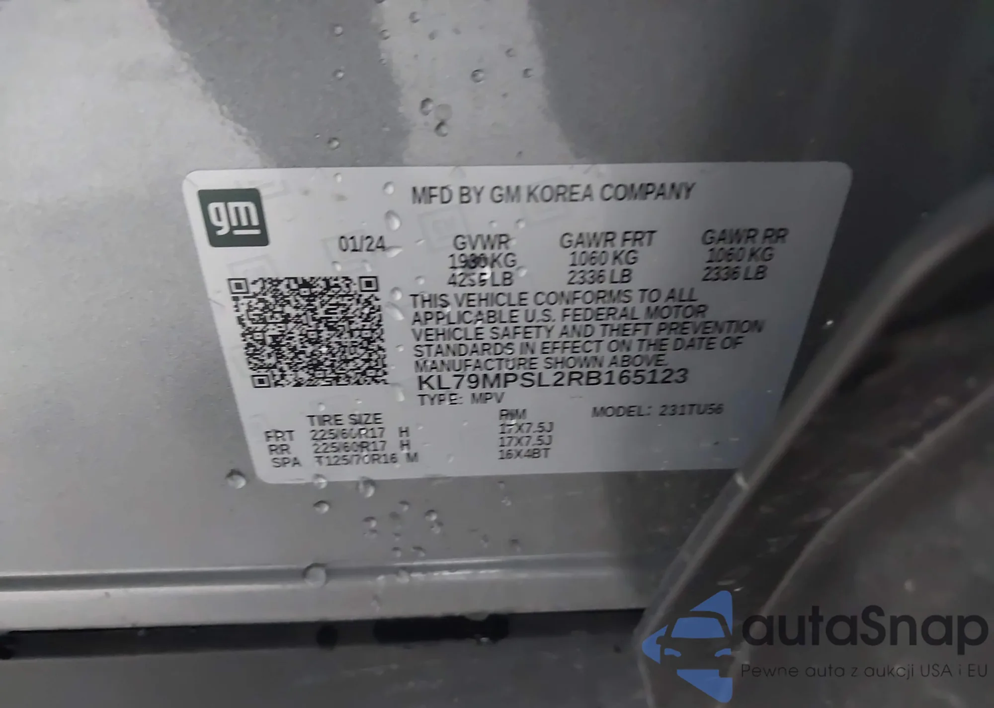 LOT: 43814137 VIN: KL79MPSL2RB165123
