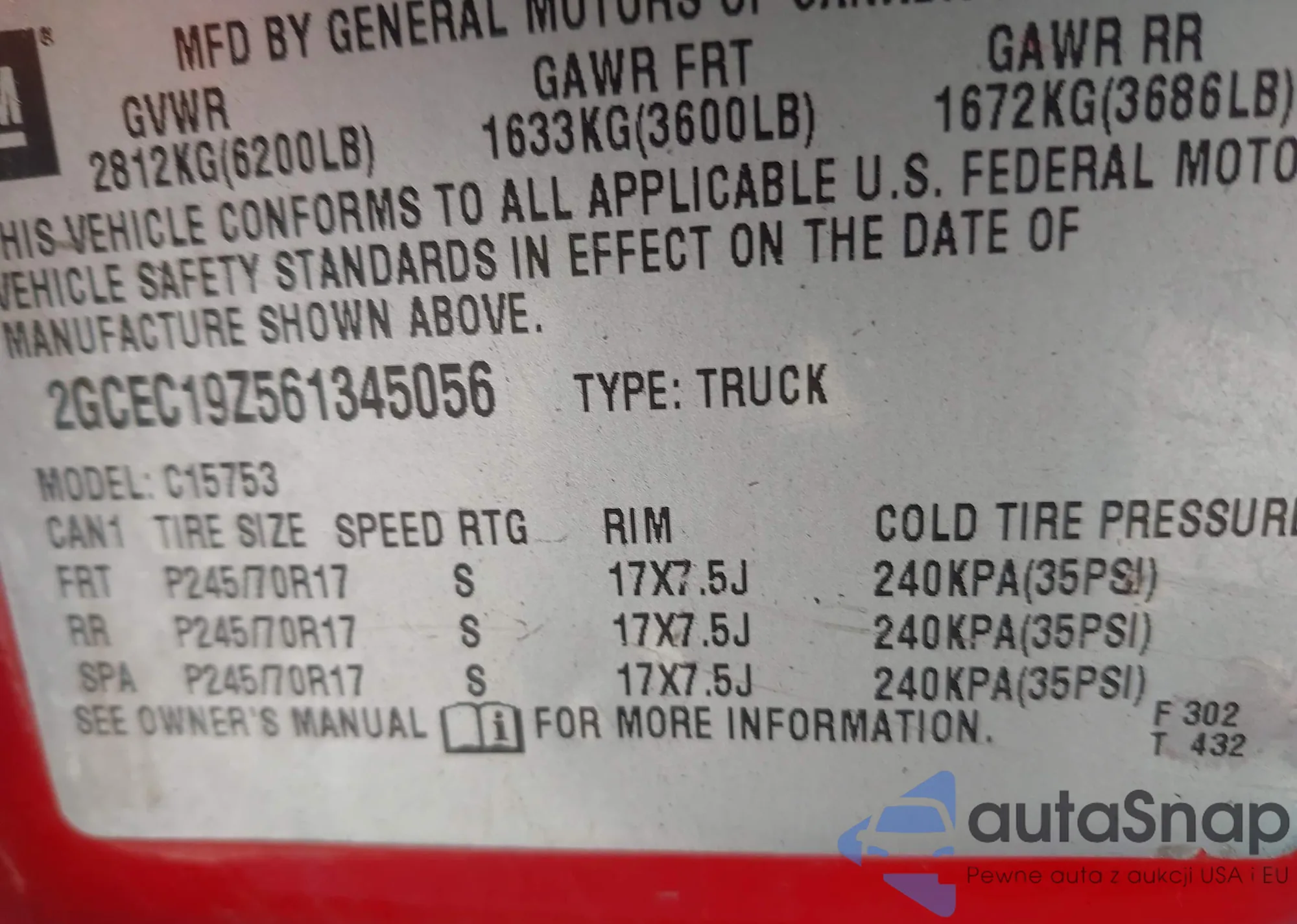 • VIN 1GCGTDEN9J1269532