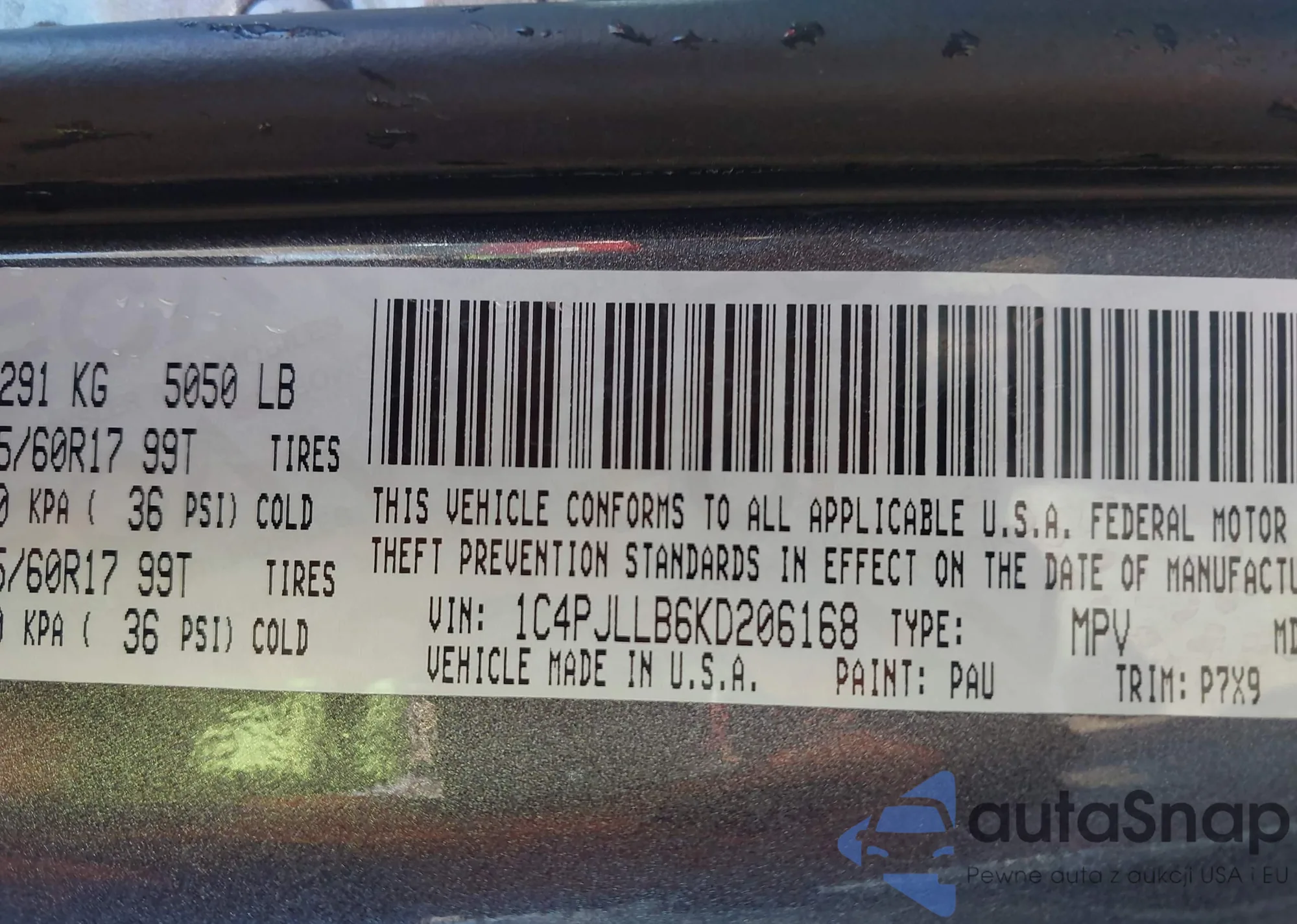 • VIN 1C4PJLLB6KD206168