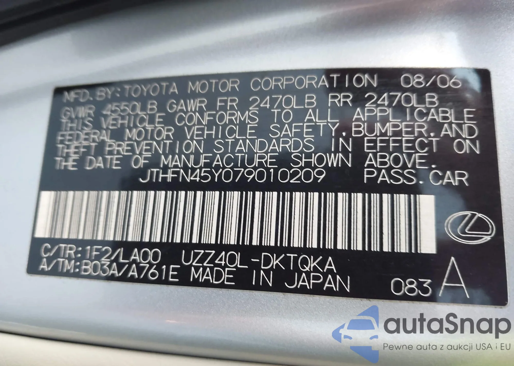 • VIN JTHFN45Y079010209