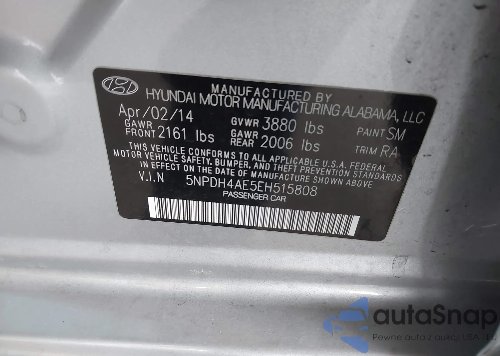 • VIN 5NPDH4AE5EH515808