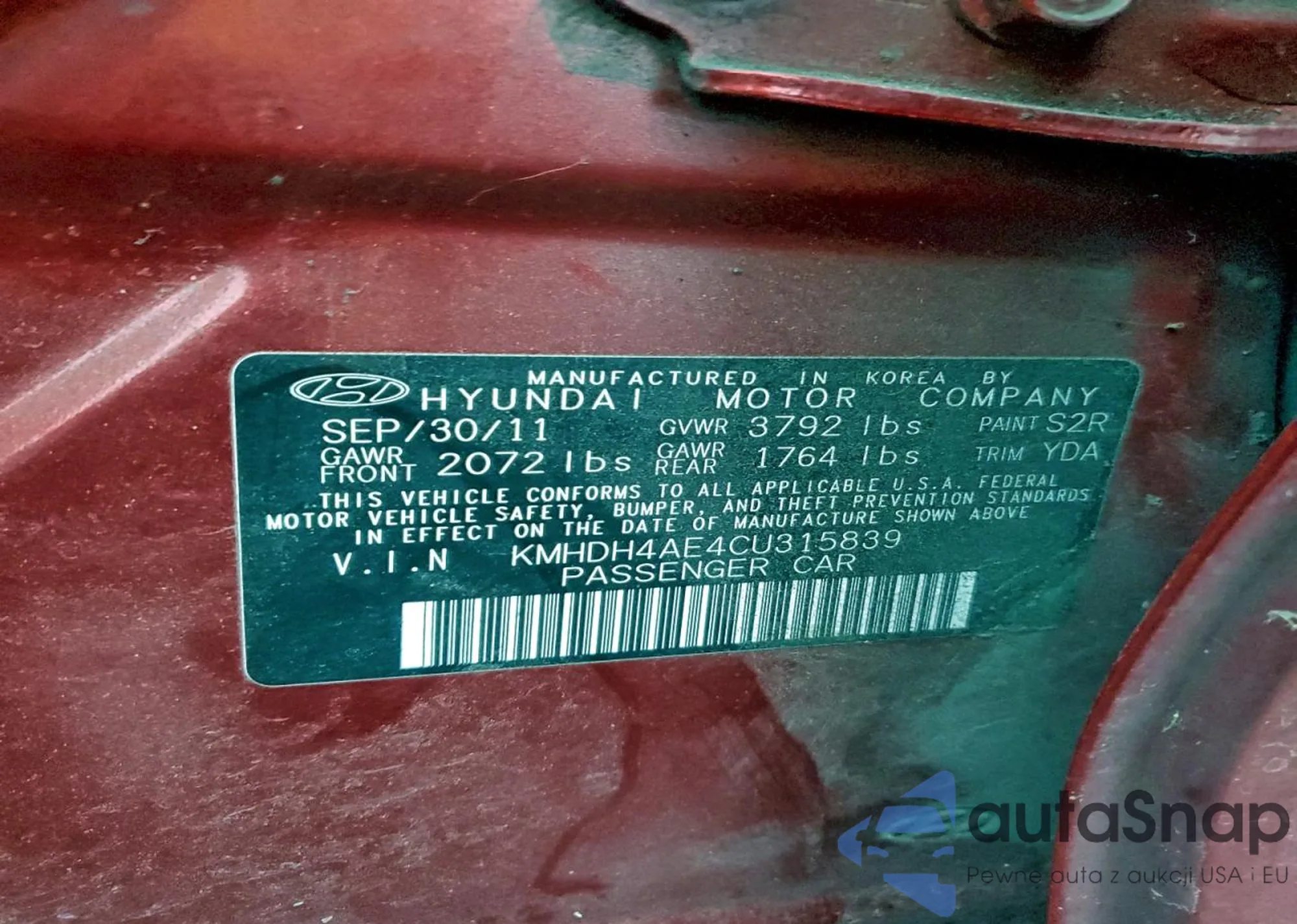 • VIN KMHDH4AE4CU315839