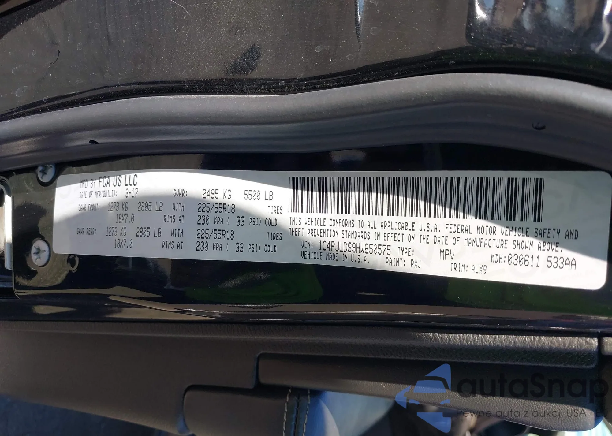 LOT: 43565787 VIN: 1C4PJLDS9HW650575
