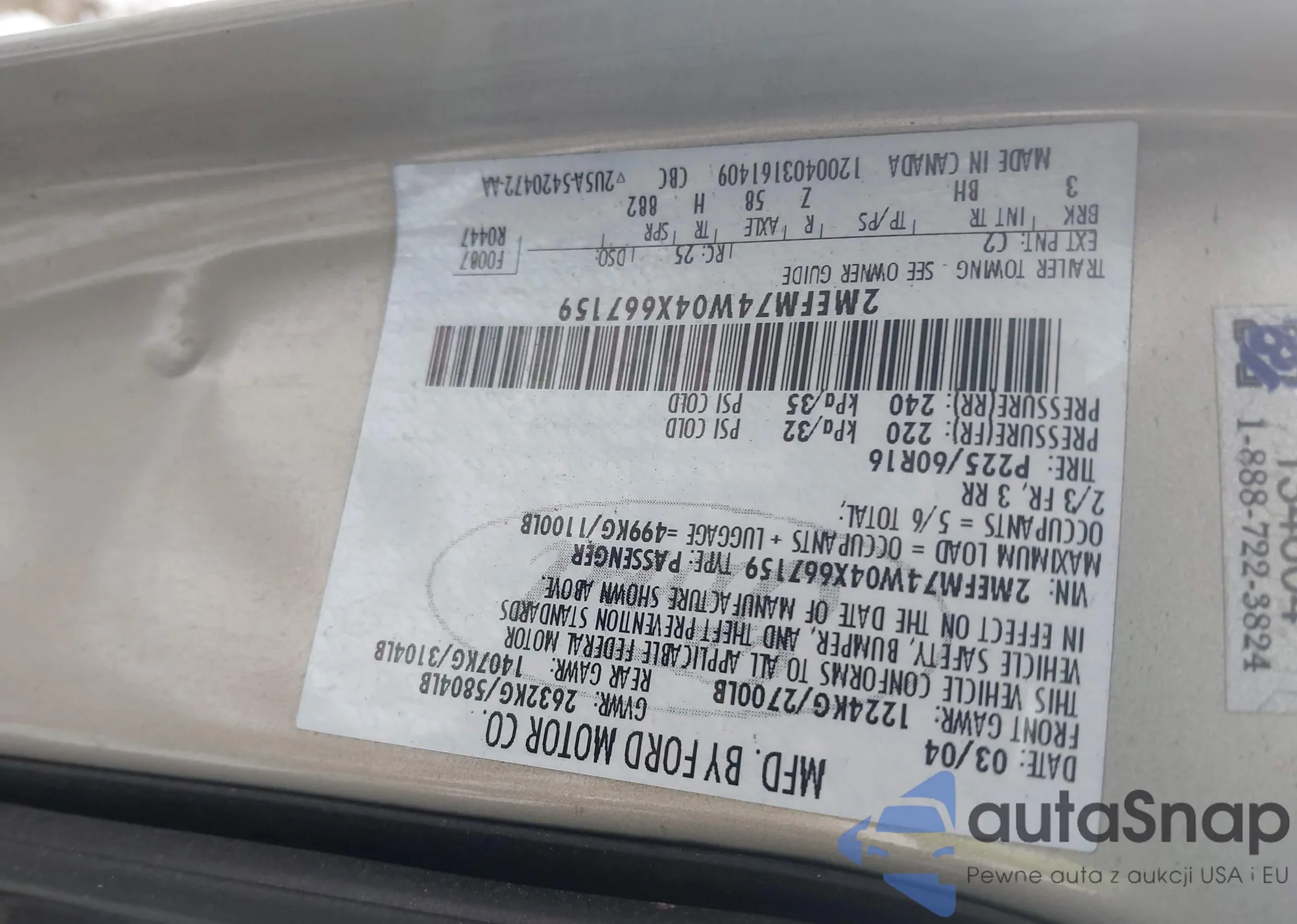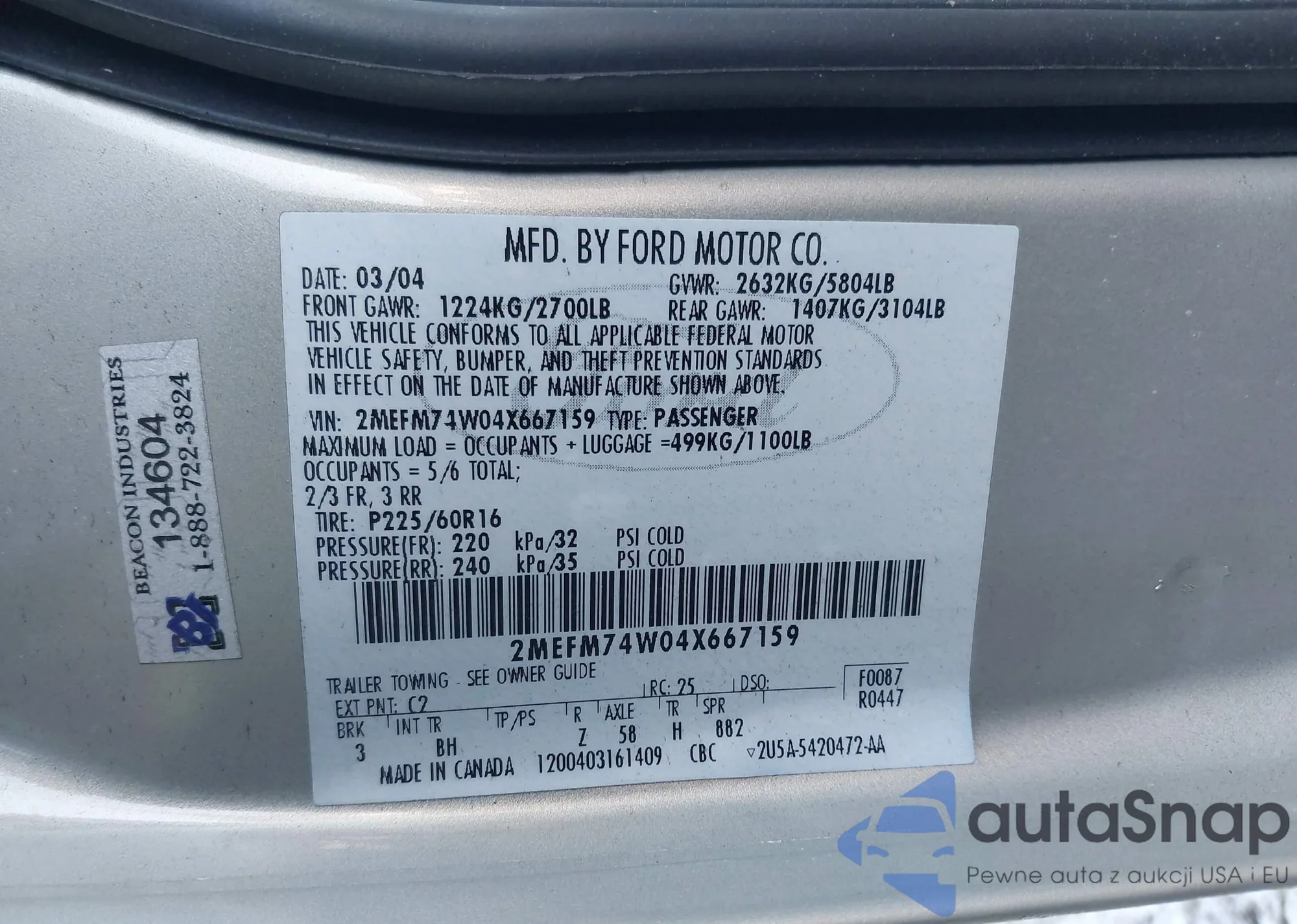 LOT: 43925197 VIN: 2MEFM74W04X667159