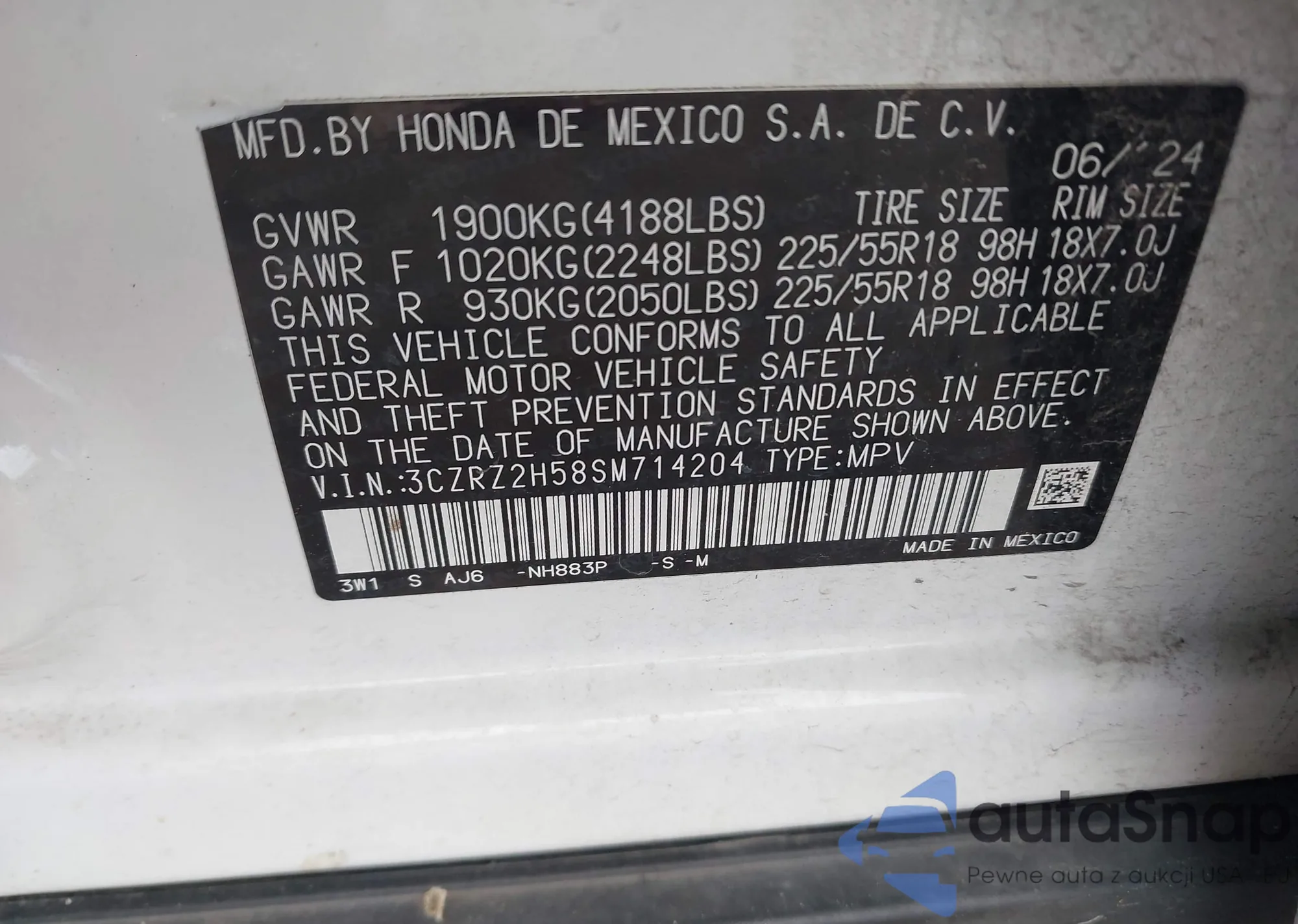 • VIN 3CZRZ2H58SM714204