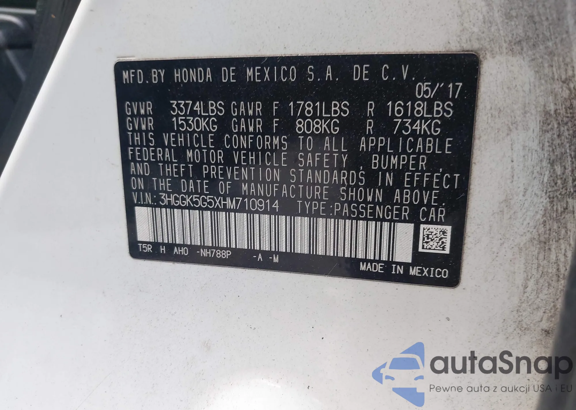 • VIN 3HGGK5G5XHM710914