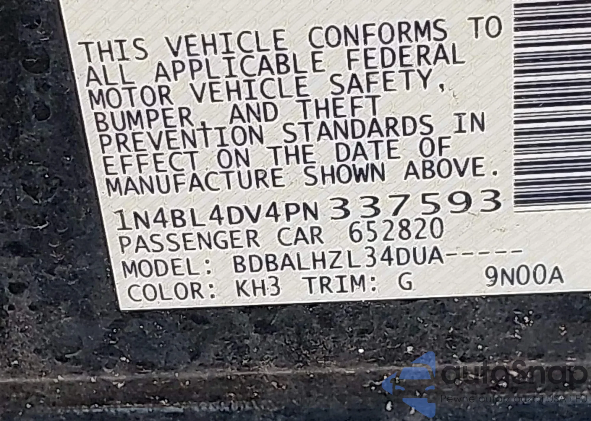 • VIN 1N4BL4DV4PN337593