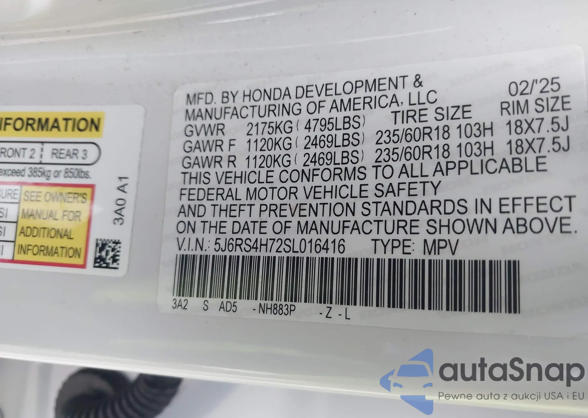 LOT: 43605631 VIN: JTMABACA5RA090780