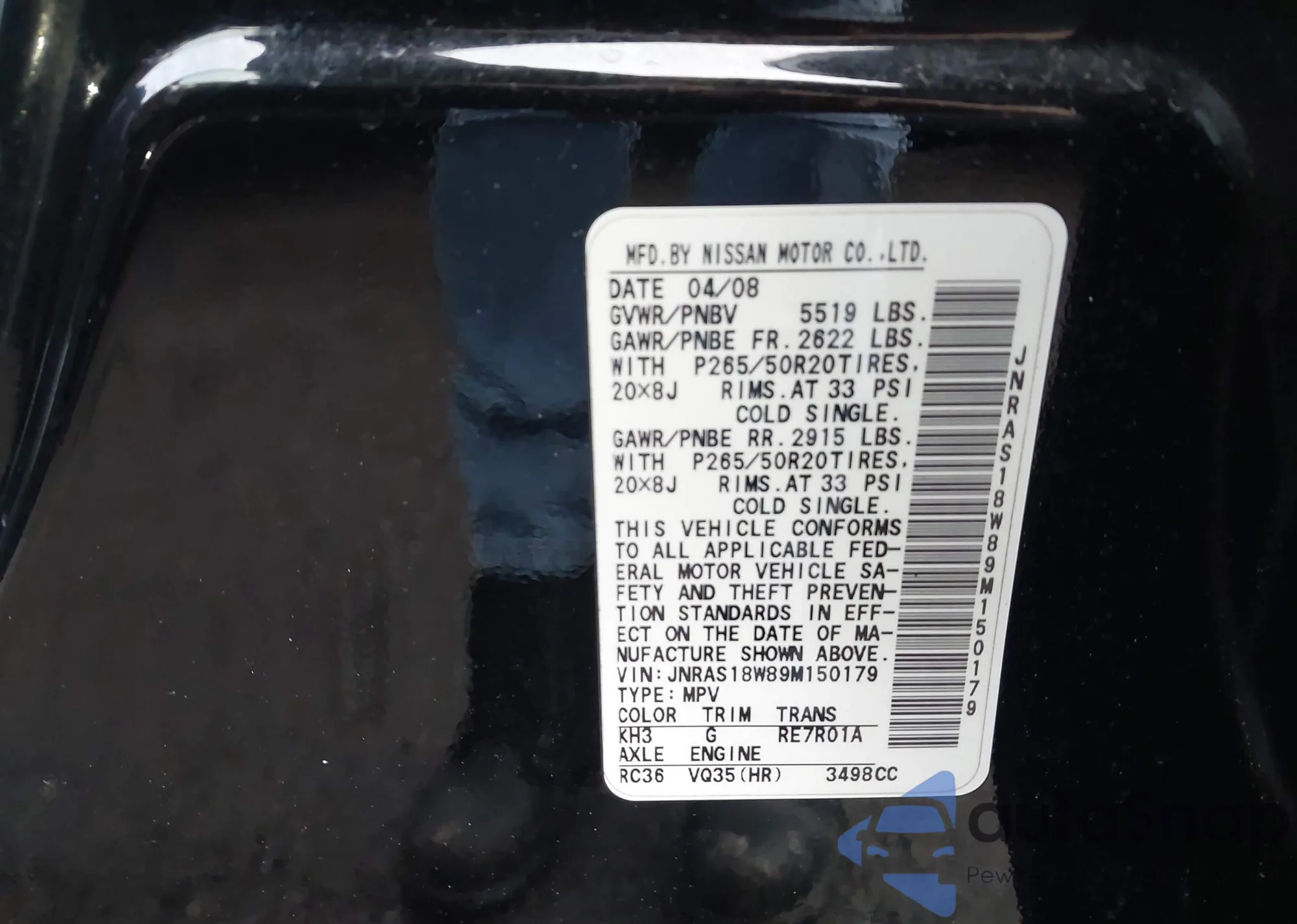 LOT: 44022960 VIN: JNRAS18W89M150179