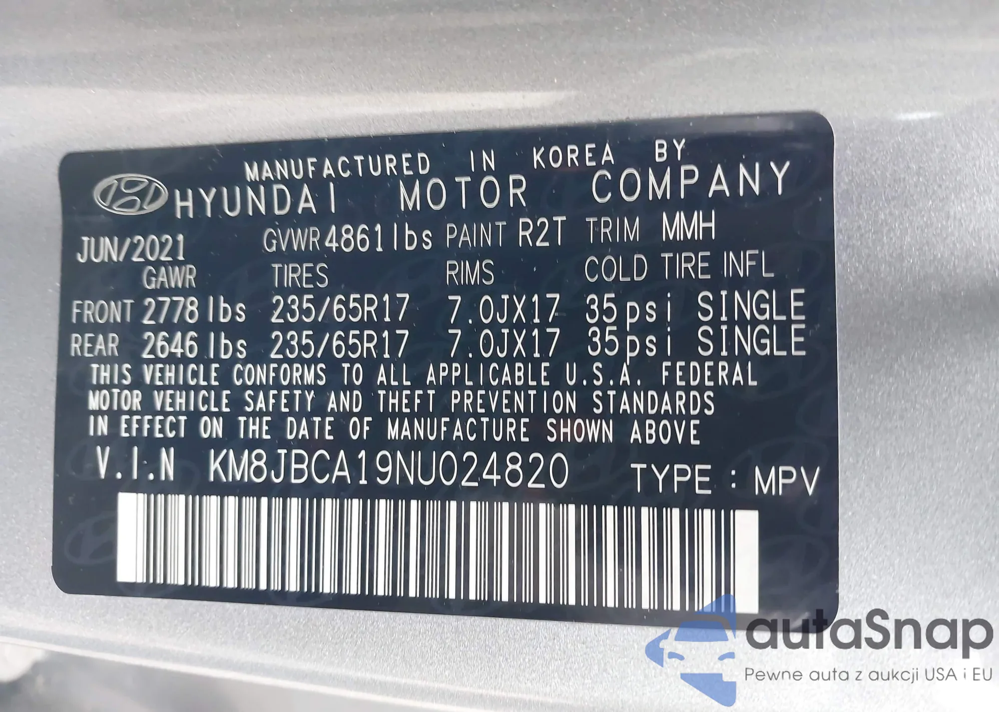 LOT: 43791165 VIN: KM8JBCA19NU024820