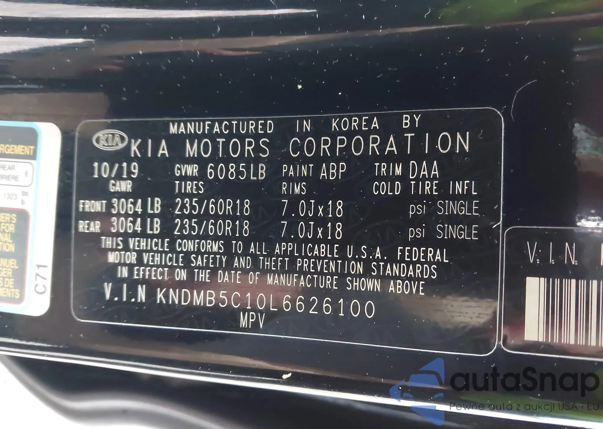LOT: 43894964 VIN: KNDMB5C10L6626100