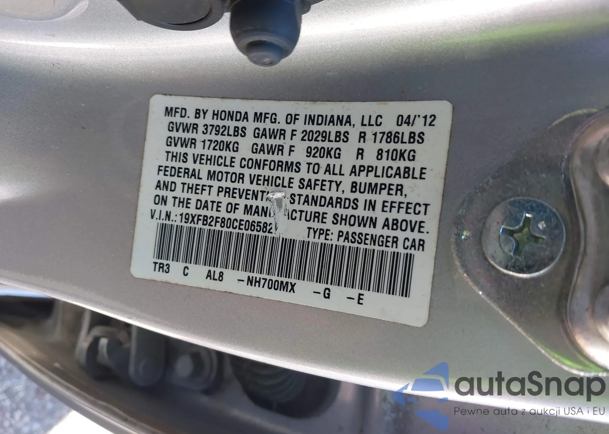 • VIN 19XFB2F80CE065827