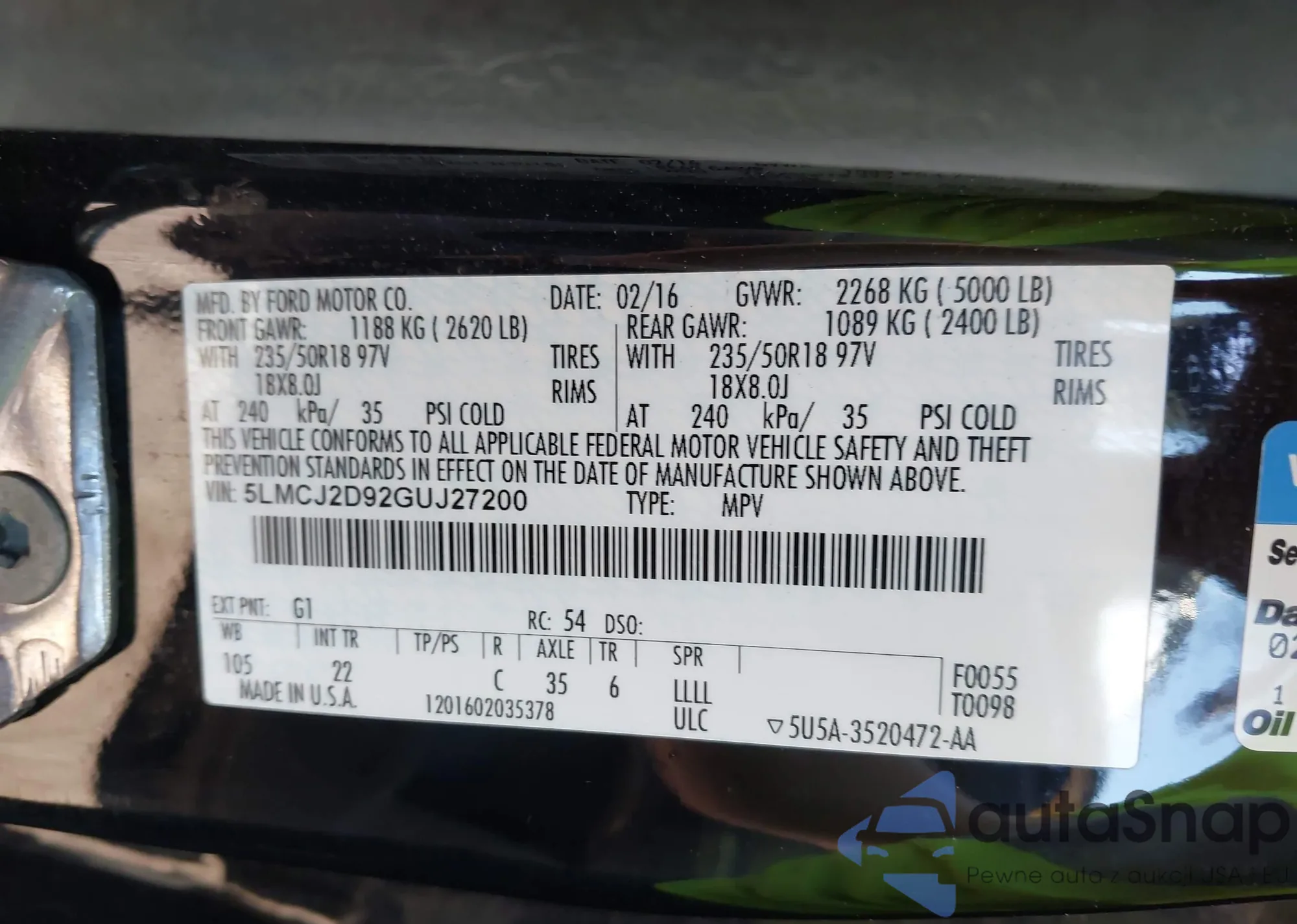 • VIN 3KPFT4DE5SE202891
