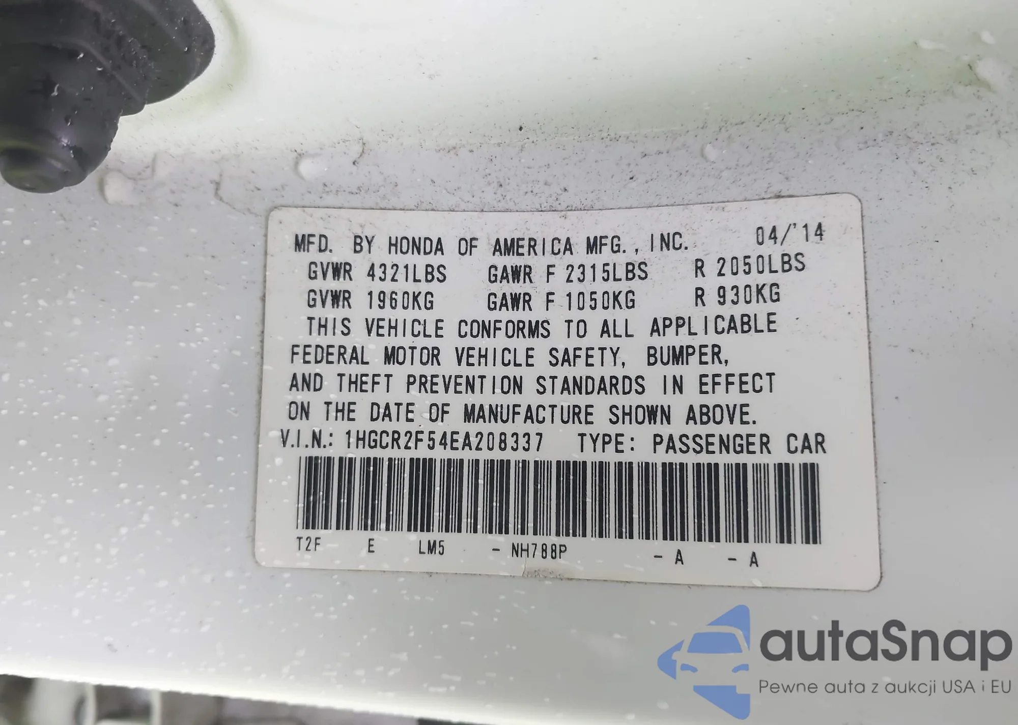 • VIN 1HGCR2F54EA208337