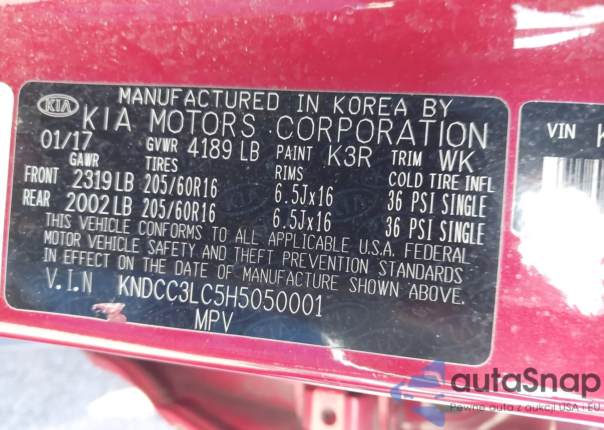 • VIN KNDCC3LC5H5050001