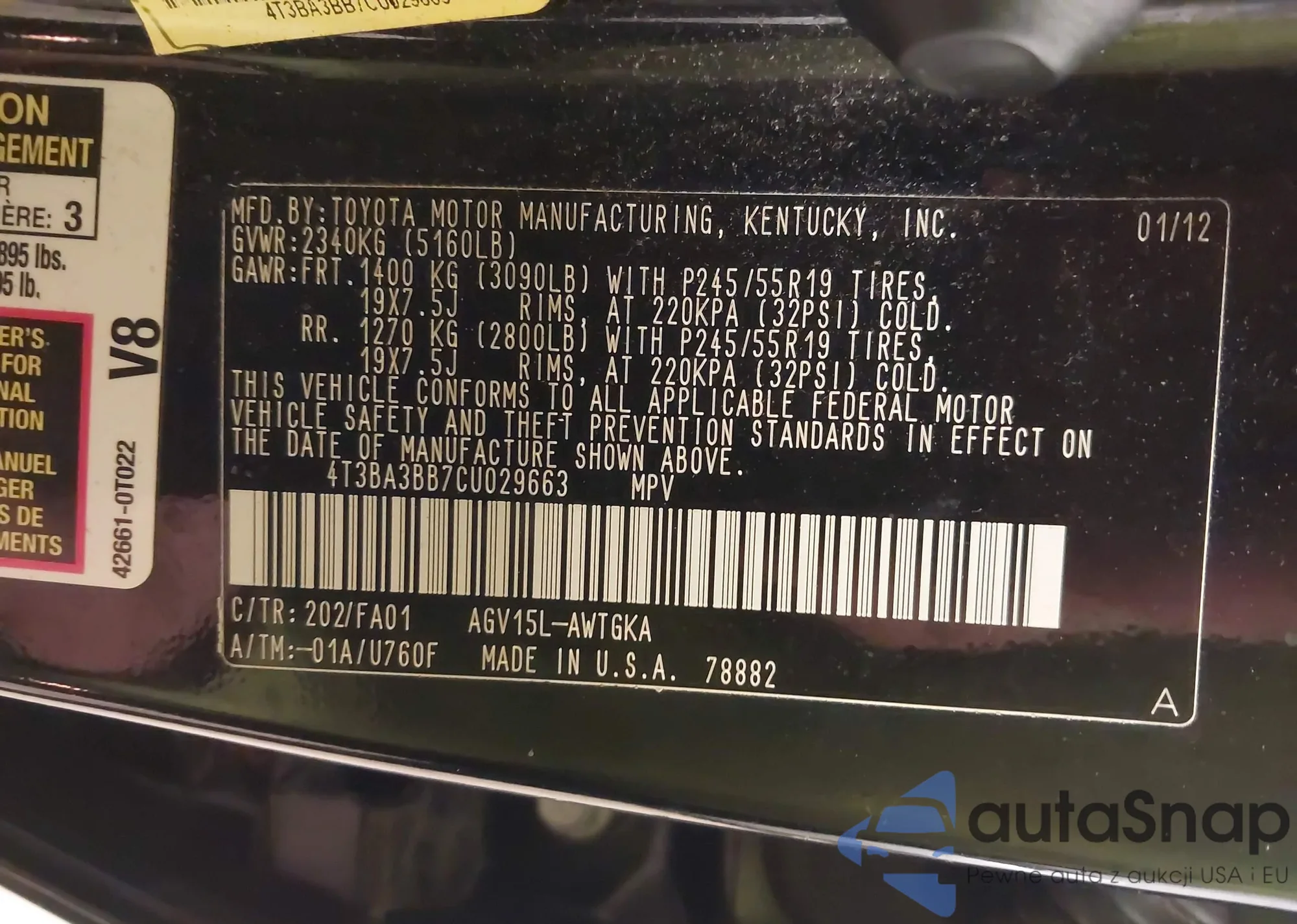 • VIN 4T3BA3BB7CU029663