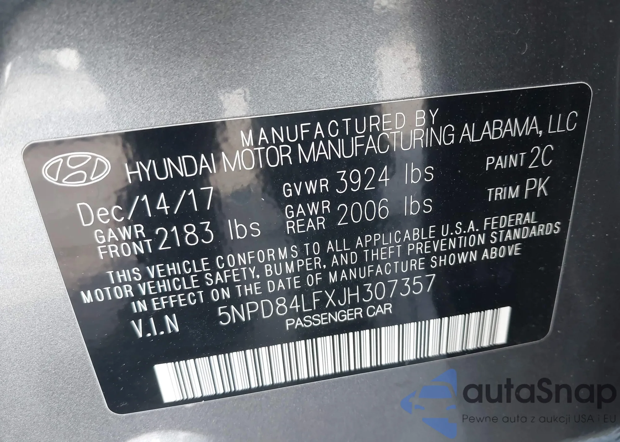 • VIN 5NPD84LFXJH307357