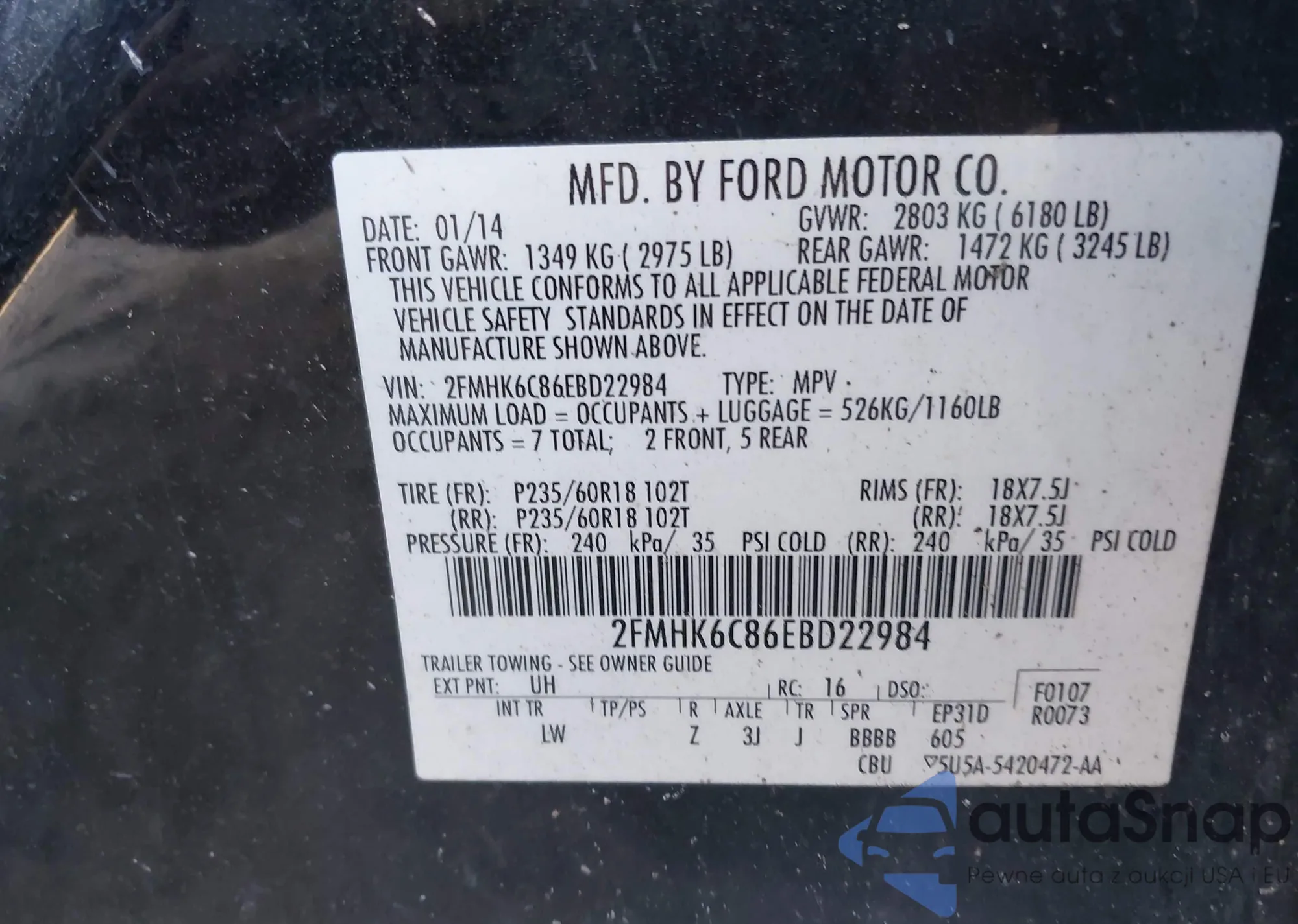 • VIN 2FMHK6C86EBD22984