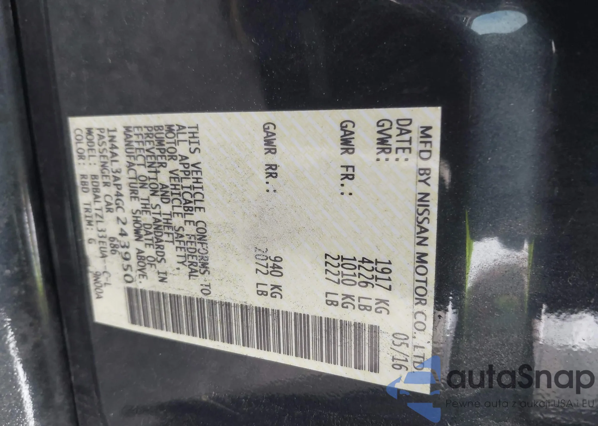 • VIN 1N4AL3AP4GC243950