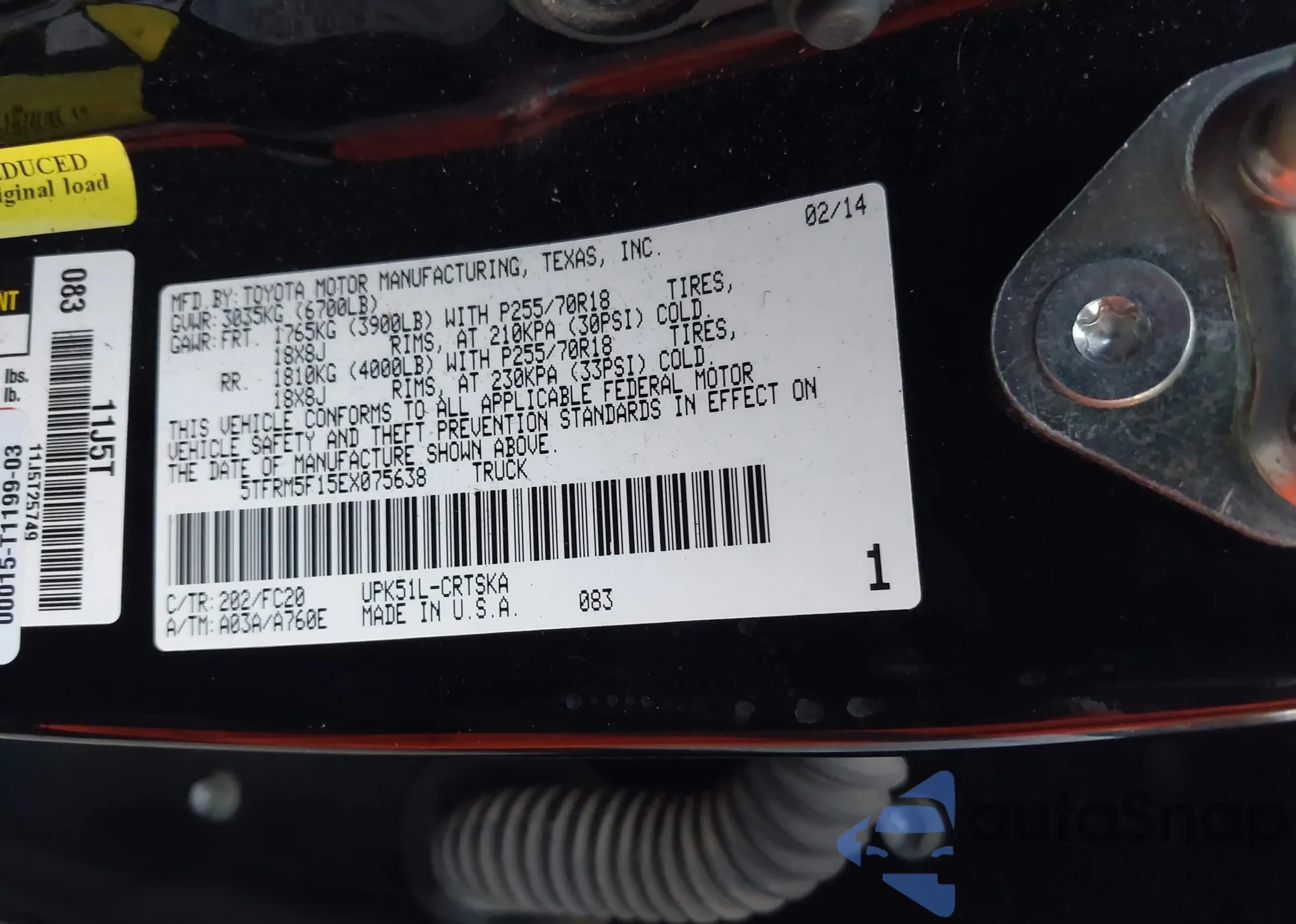 • VIN 1FTRW07372KD62985