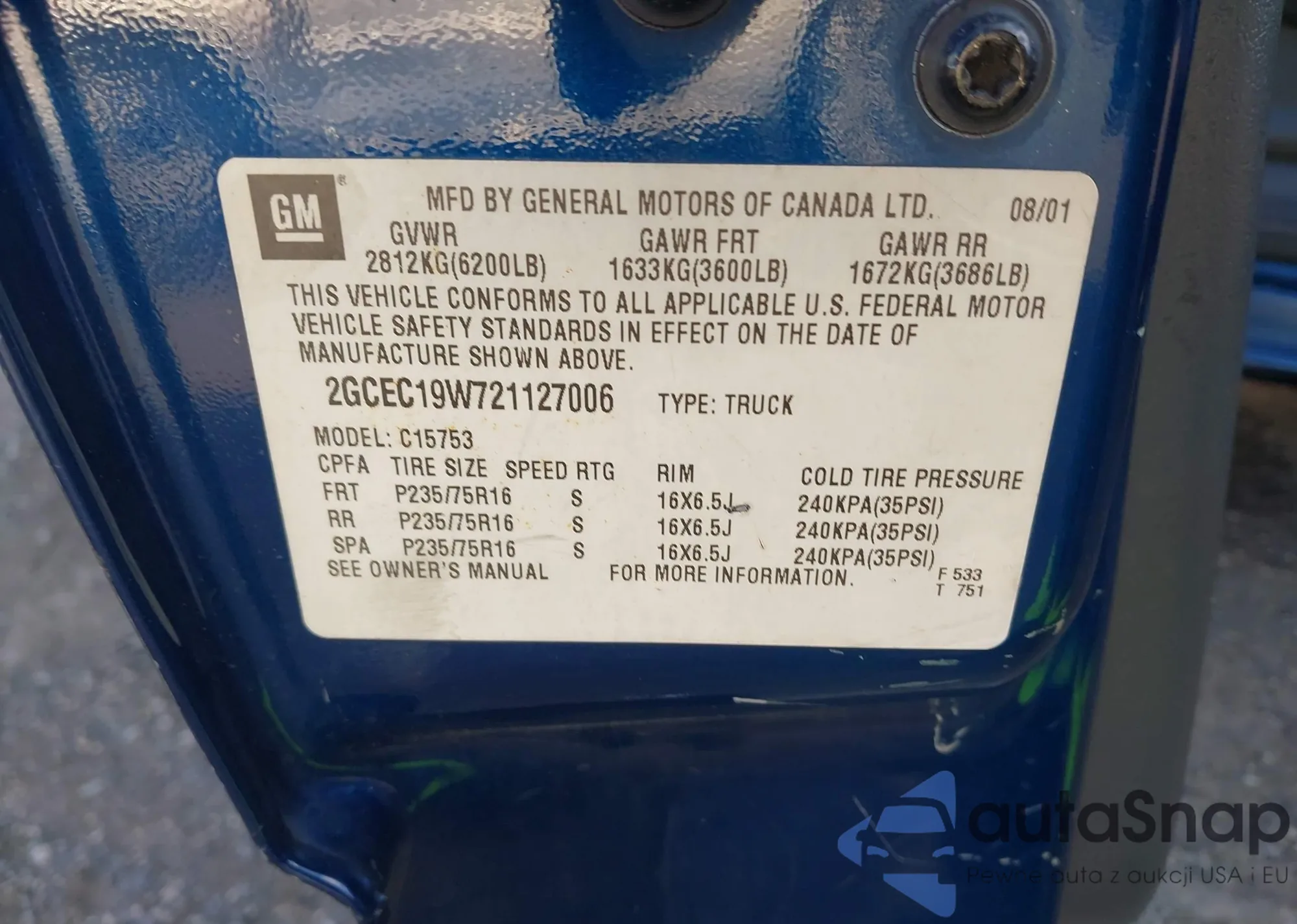 • VIN 2GCEC19W721127006