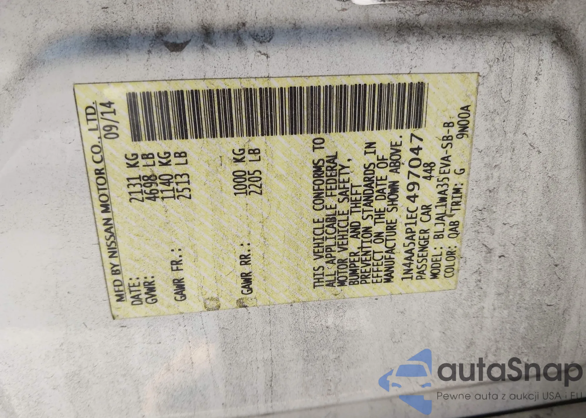 LOT: 43935902 VIN: 3N1AB8CV6NY248578