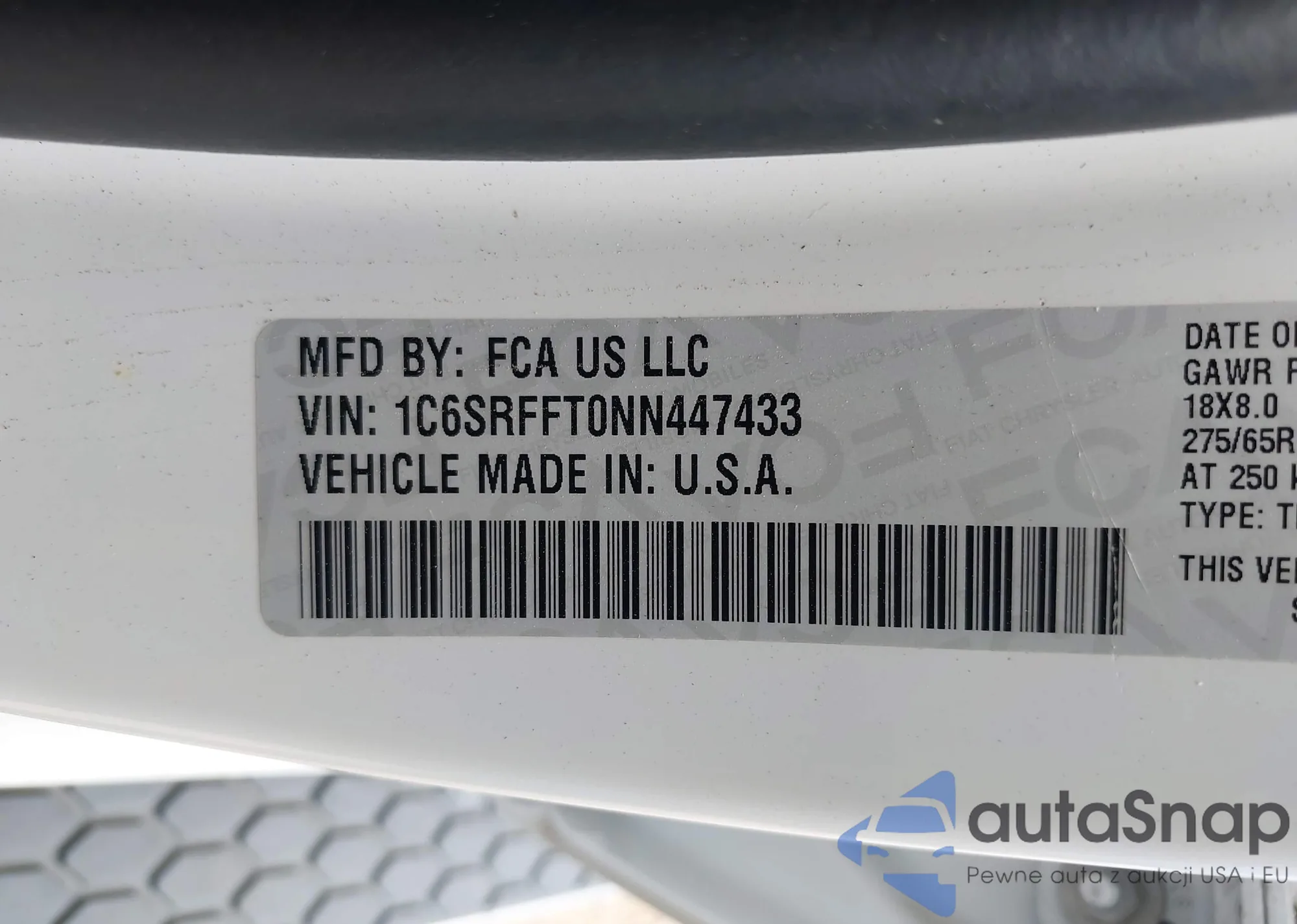 LOT: 43724746 VIN: 1C6SRFFT0NN447433
