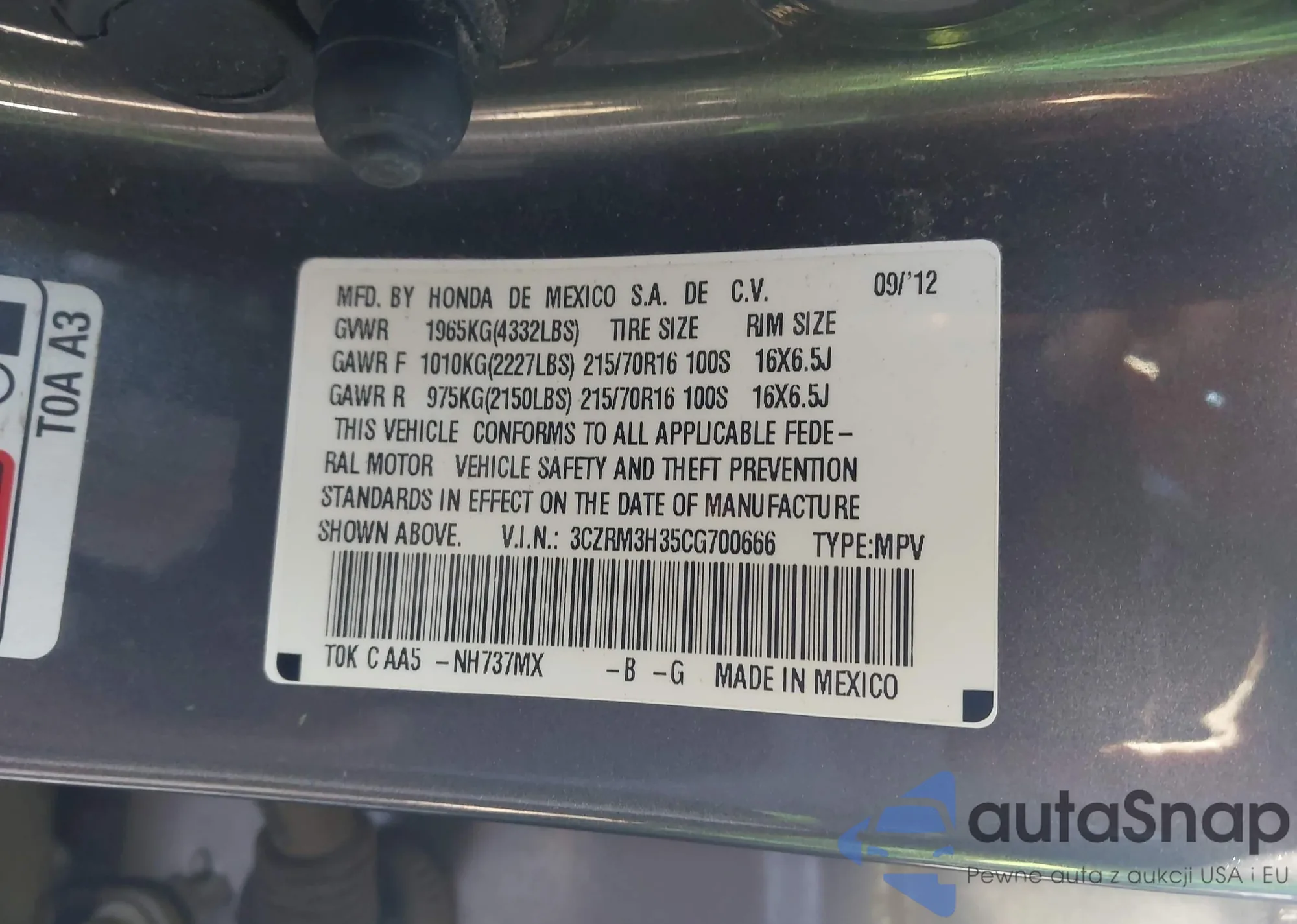 • VIN 3CZRM3H35CG700666