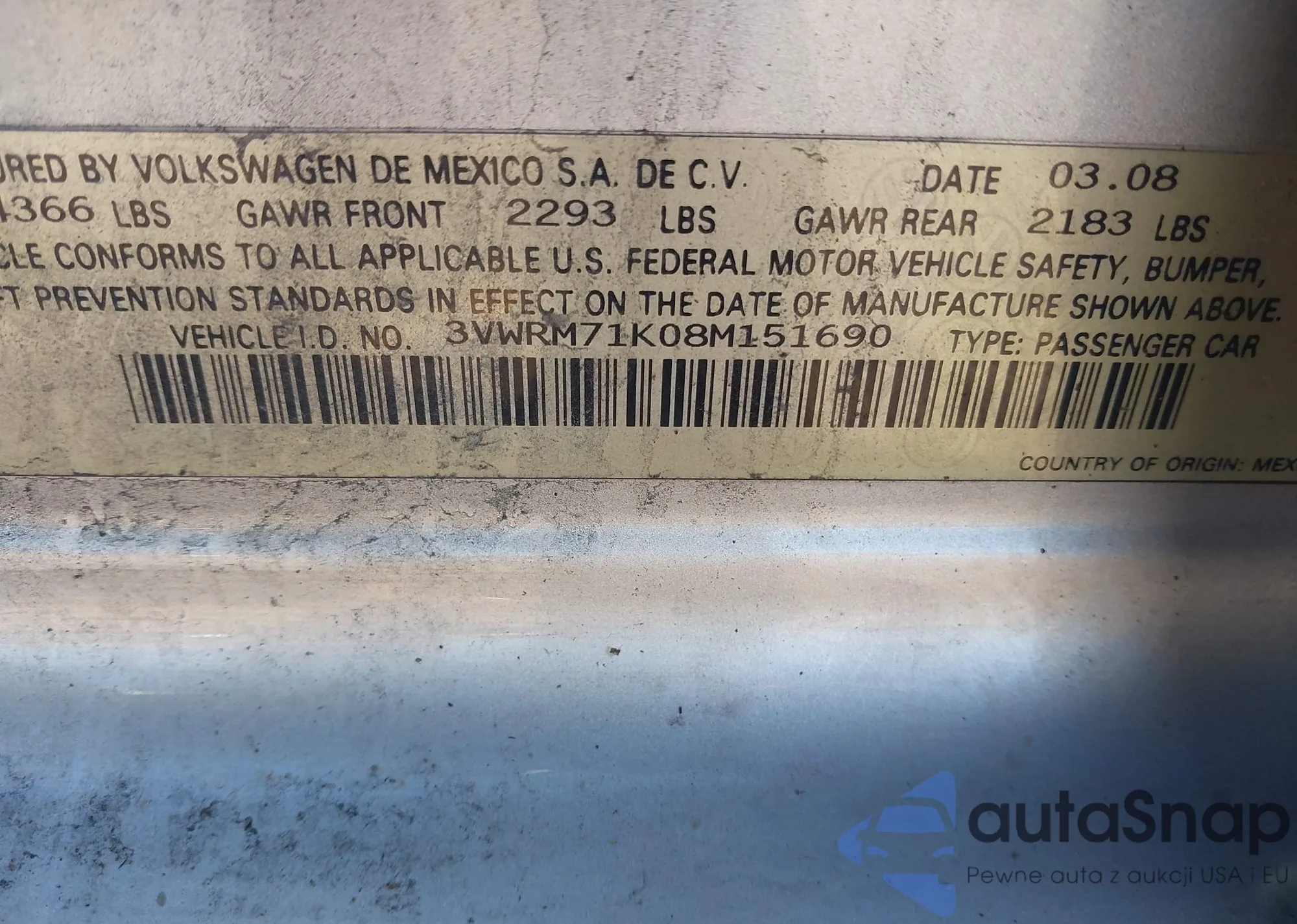LOT: 44034967 VIN: KMHFC46F28A301083