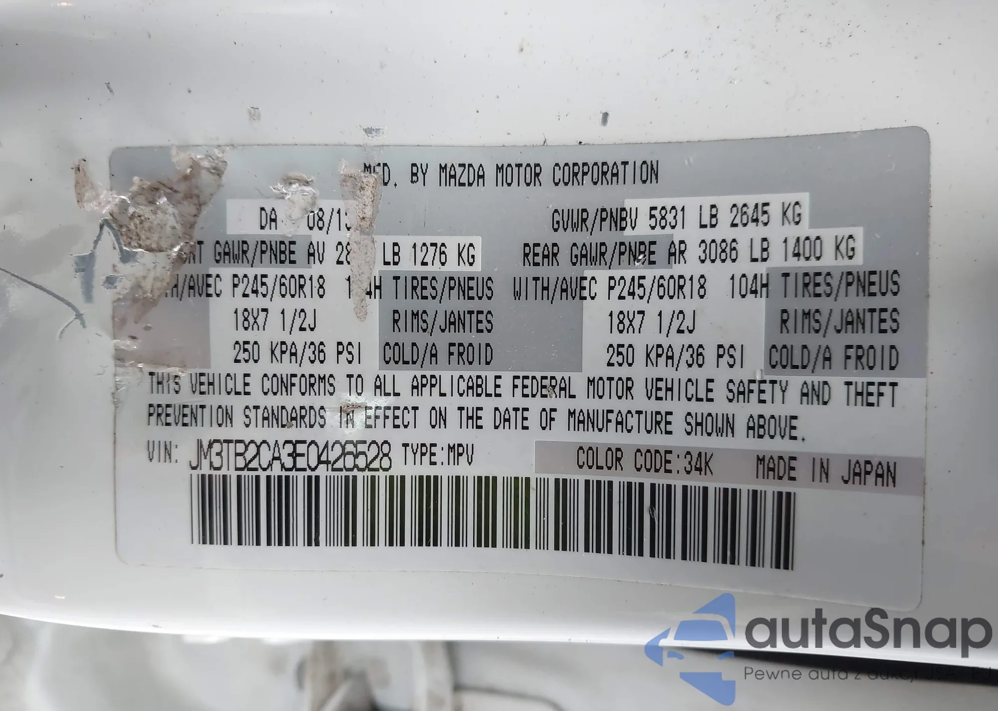 • VIN JM3TB2CA3E0426528