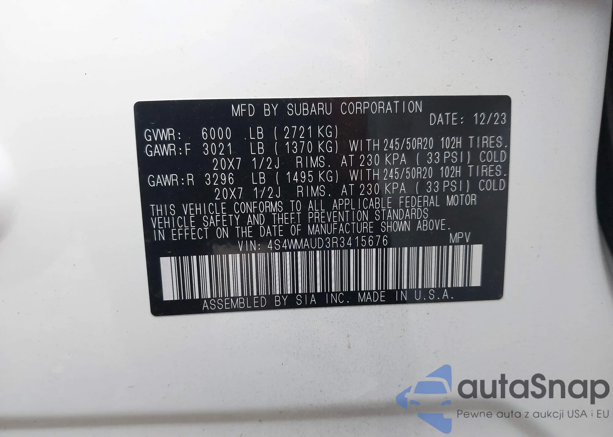 LOT: 43881776 VIN: 4S4WMAUD3R3415676
