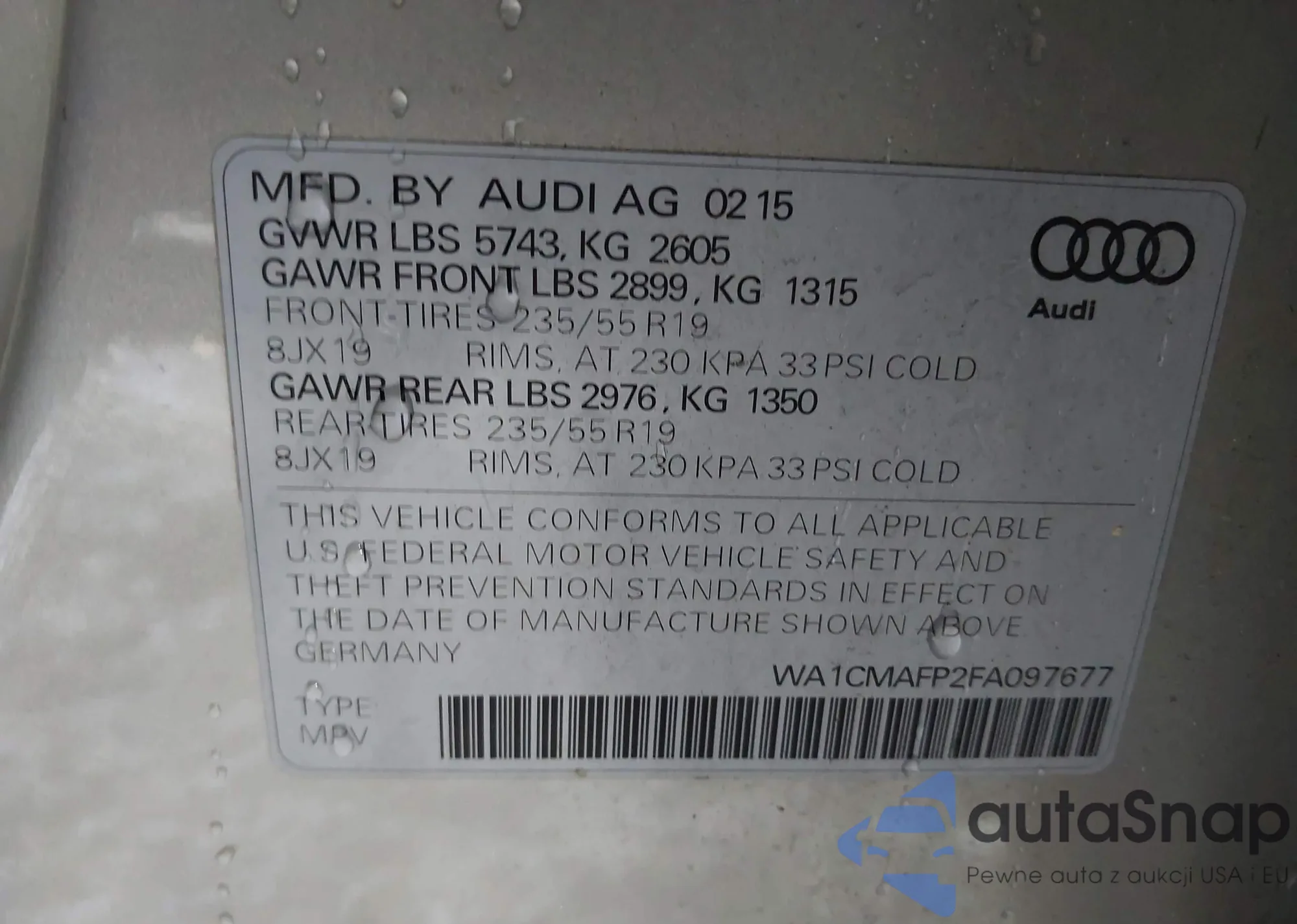 LOT: 43761455 VIN: WA1EVAF16MD038905