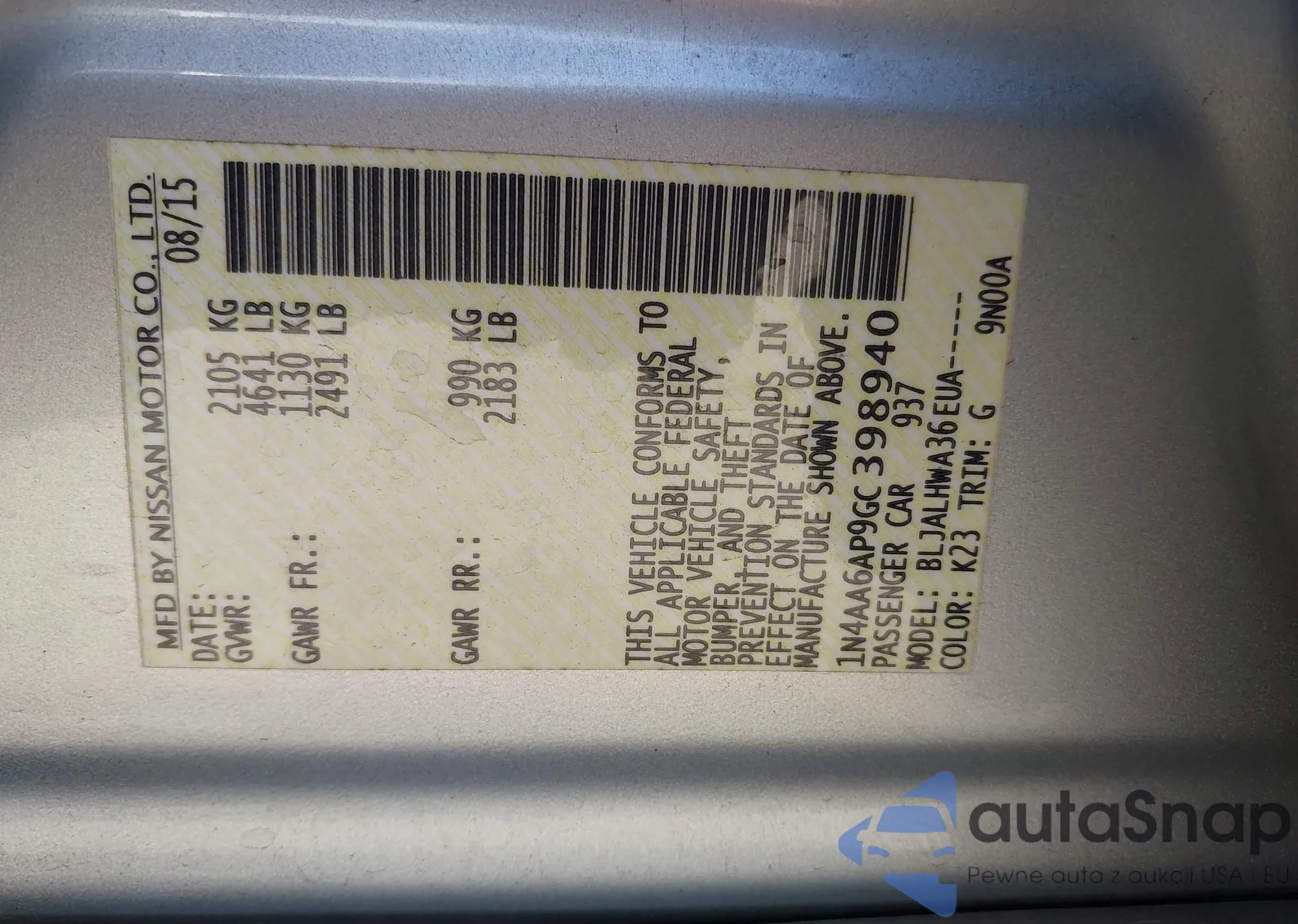 • VIN 1N4AA6AP9GC398940