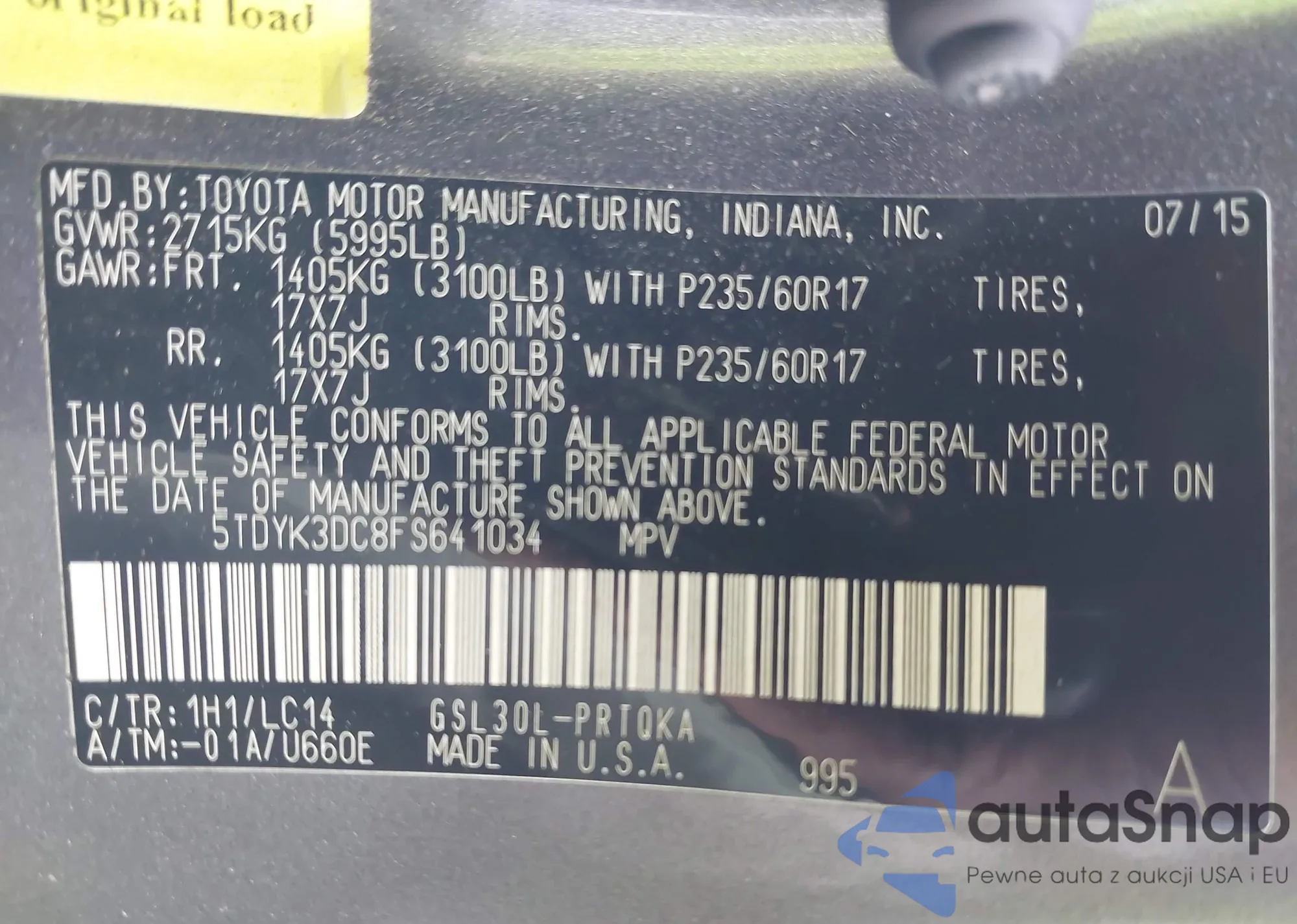 • VIN 5TDYK3DC8FS641034