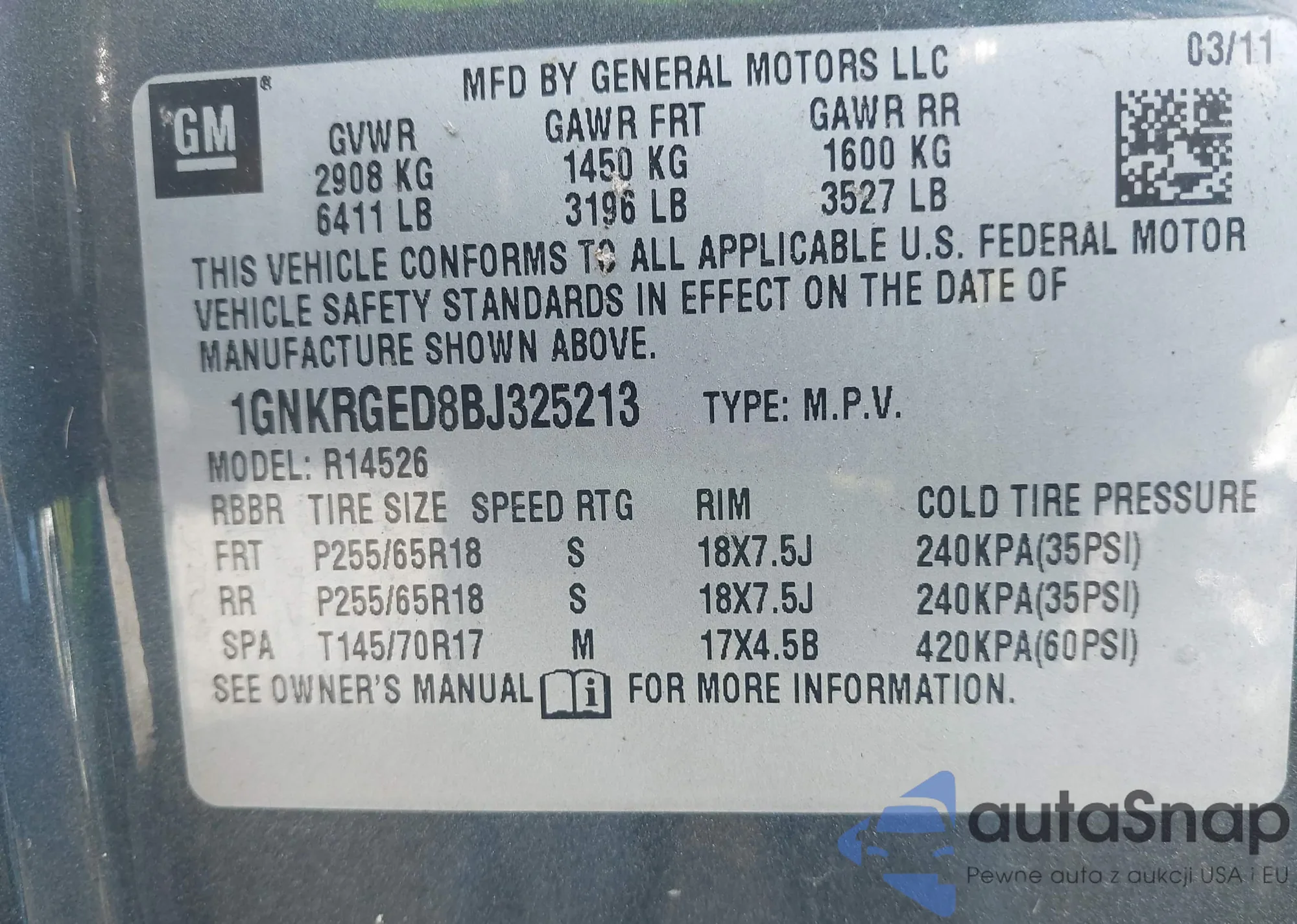 LOT: 43990004 VIN: 1HGCR3F83EA020781