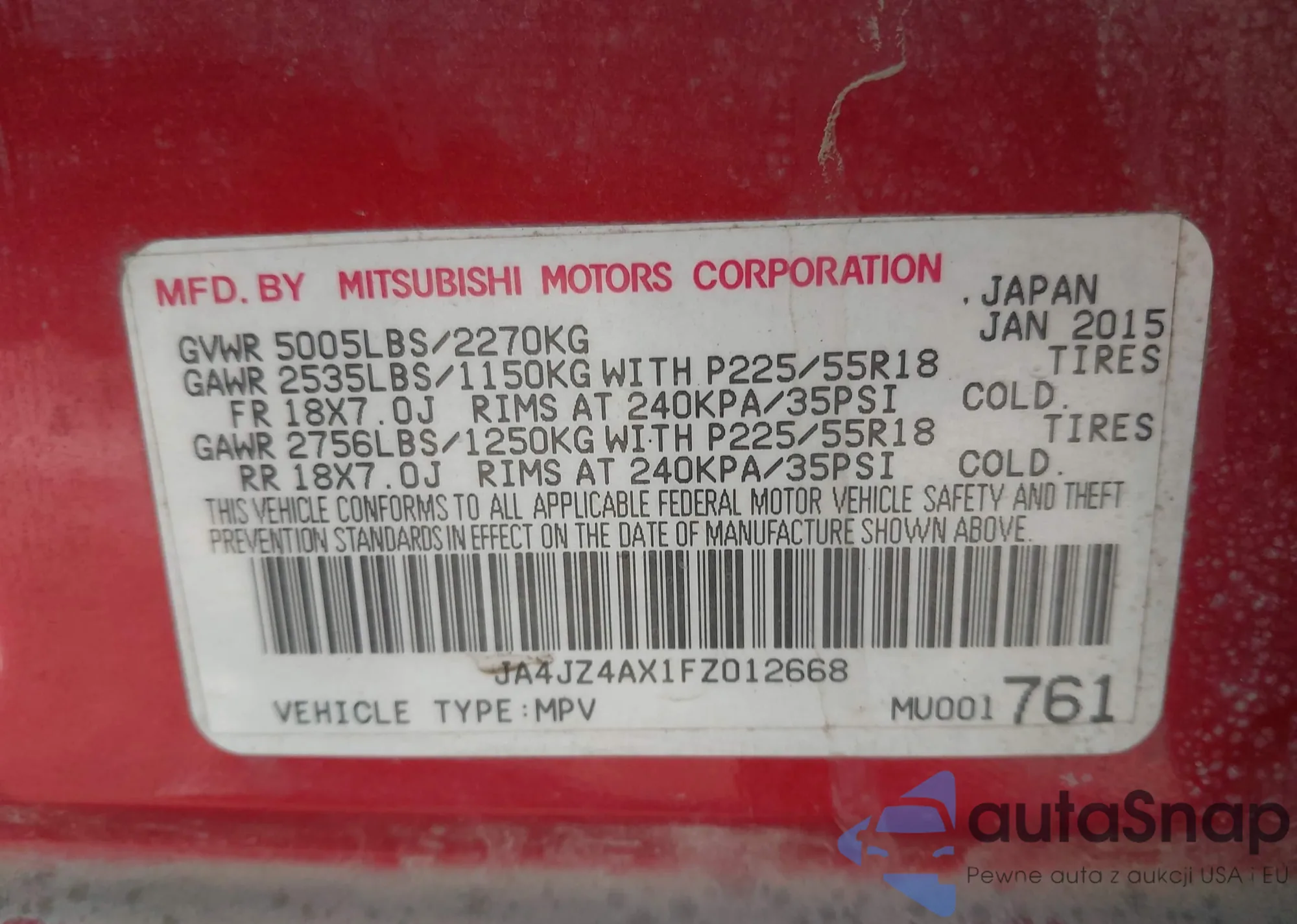 • VIN JA4JZ4AX1FZ012668